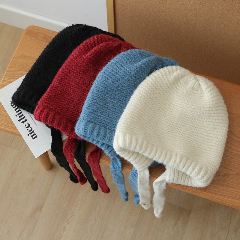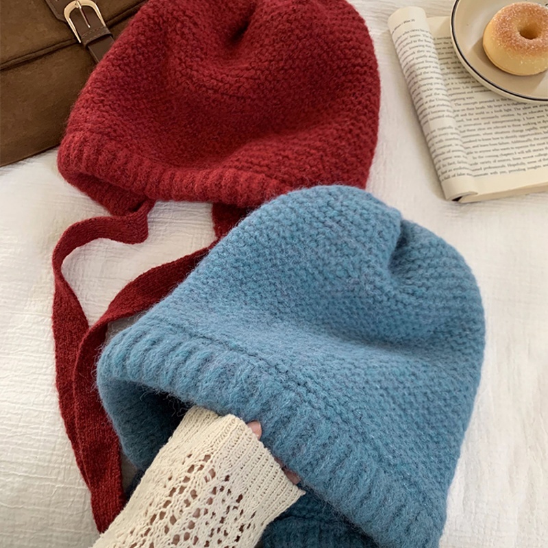 Hotcap ชิปปิ้ง?หมวกถัก 2-in-1 สำหรับผู้หญิง พร้อมกระเป๋าที่ปรับเปลี่ยนได้ มีที่ปิดหู อบอุ่นและสวมใส่สบาย สีพื้น