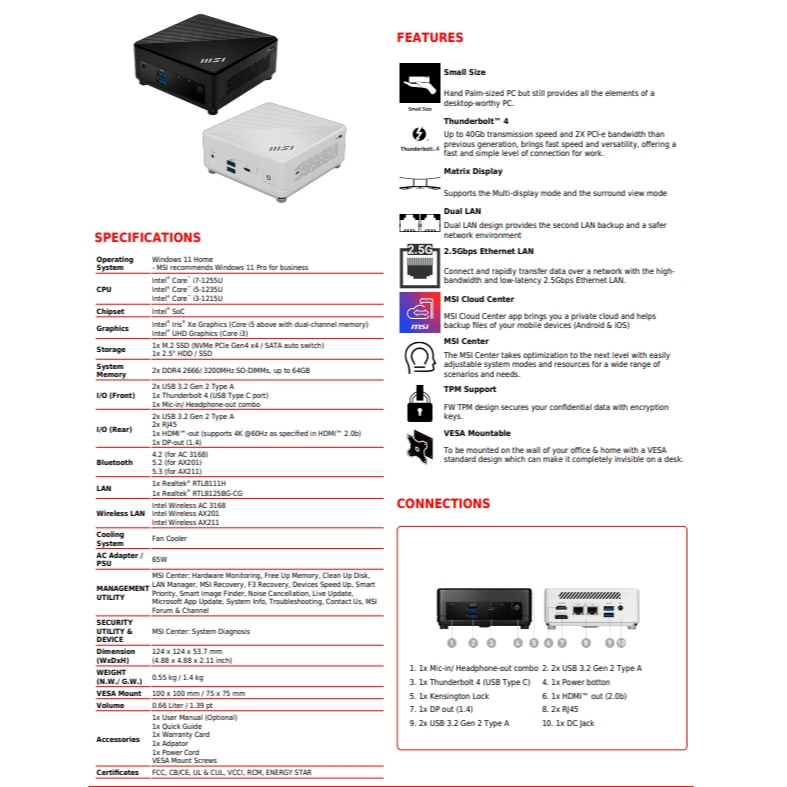 [Pre-Order] MSI Cubi 5 12M-463TH,464TH,466TH,467TH,468TH มินิพีซี Mini PC Gen12 มี Win 11 Home + Office H&S 2024