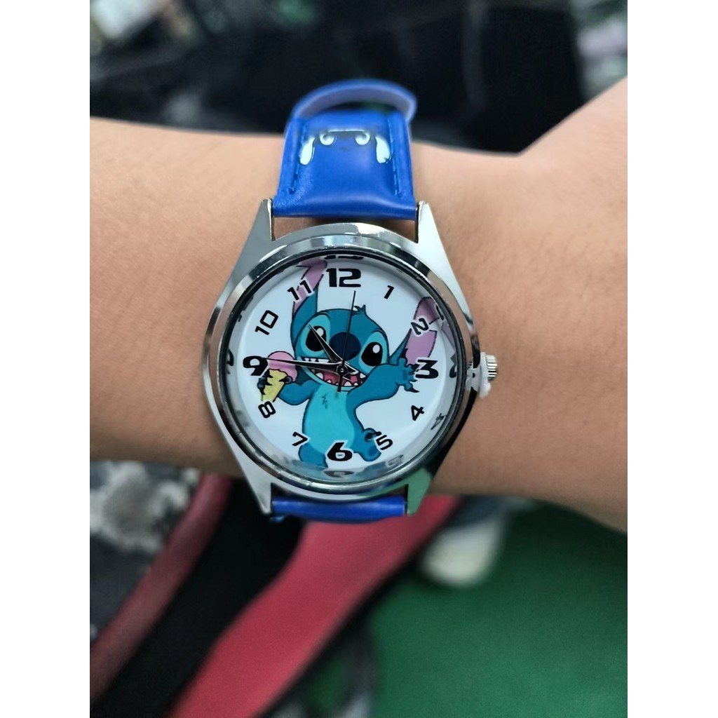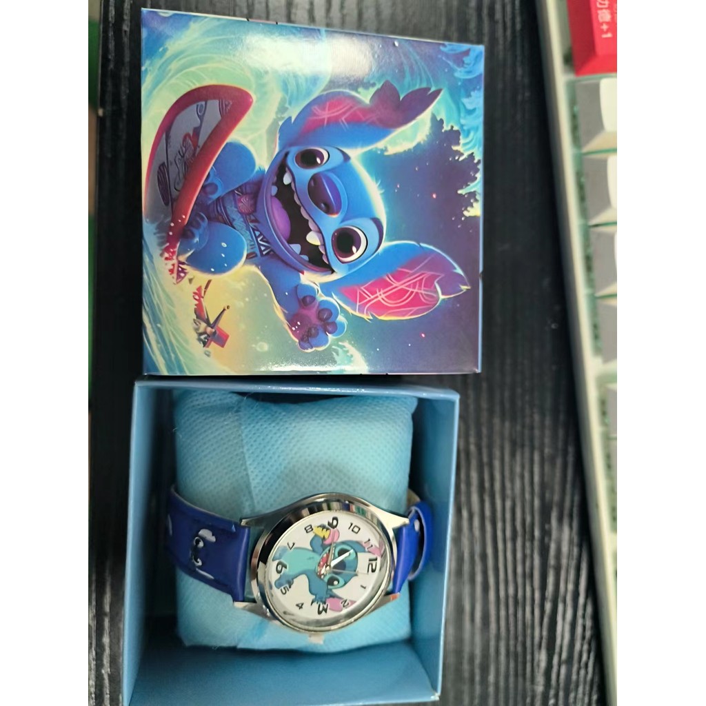 Stitch Sanrio กล่องนาฬิกาตัวชี้ควอตซ์เด็กกล่องนาฬิกาสาว Kawaii Stitch กล่องนาฬิกาวันเกิดน่ารัก Girly Heart