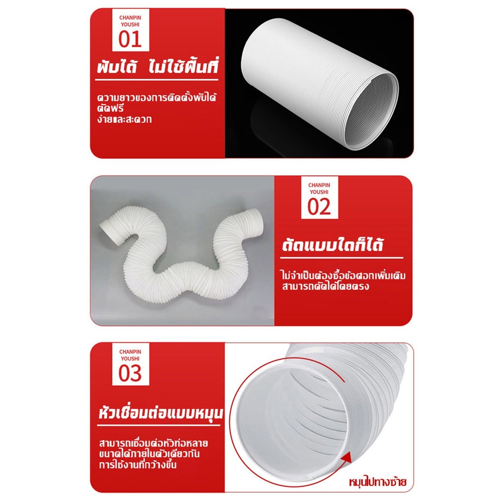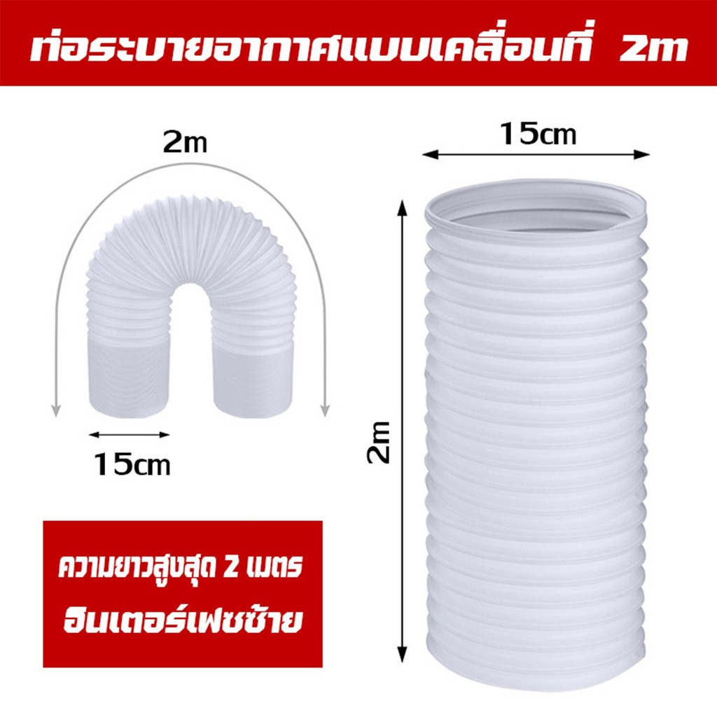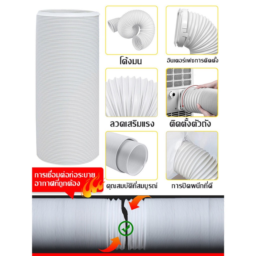 ท่อลมแอร์เคลื่อนที่ ท่อลมร้อนท่อหดแอร์พกพาท่อยืดไสลด์ ช่องระบายอากาศ ท่อเฟล็กซ์ ใช้ได้กับเครื่องปรับอากาศมือถือ