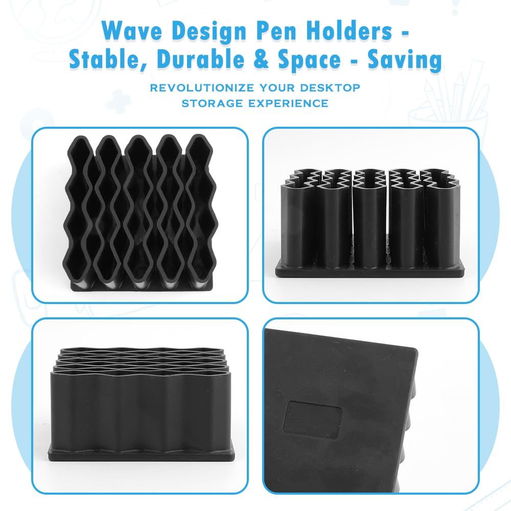 ที่ใส่ดินสอซิลิโคนดีไซน์คลื่น-กล่องเก็บของตั้งโต๊ะความจุขนาดใหญ่สําหรับปากกา,เครื่องหมาย,แปรงแต่งหน้าและอุปกรณ์ศิลปะ | มั่นคงและประหยัดพื้นที่สําหรับสํานักงาน/บ้าน/โรงเรียน/ห้องเรียน