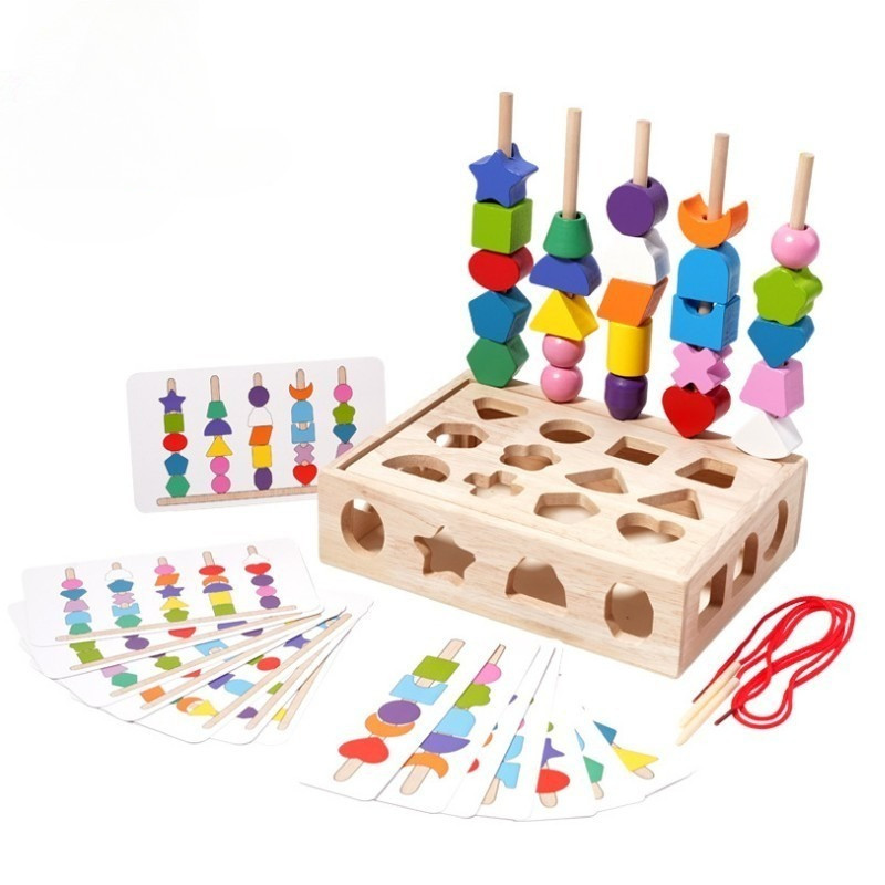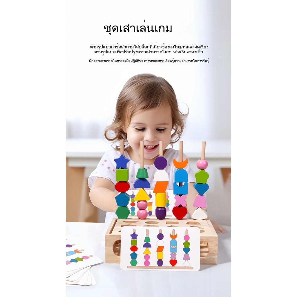 COD ลูกปัดการศึกษาของเด็กห้าชุดของคอลัมน์สีความรู้สึกสว่างรูปร่างเด็กเด็กที่ตรงกับความรู้การศึกษาในช่วงต้นบล็อกไม้