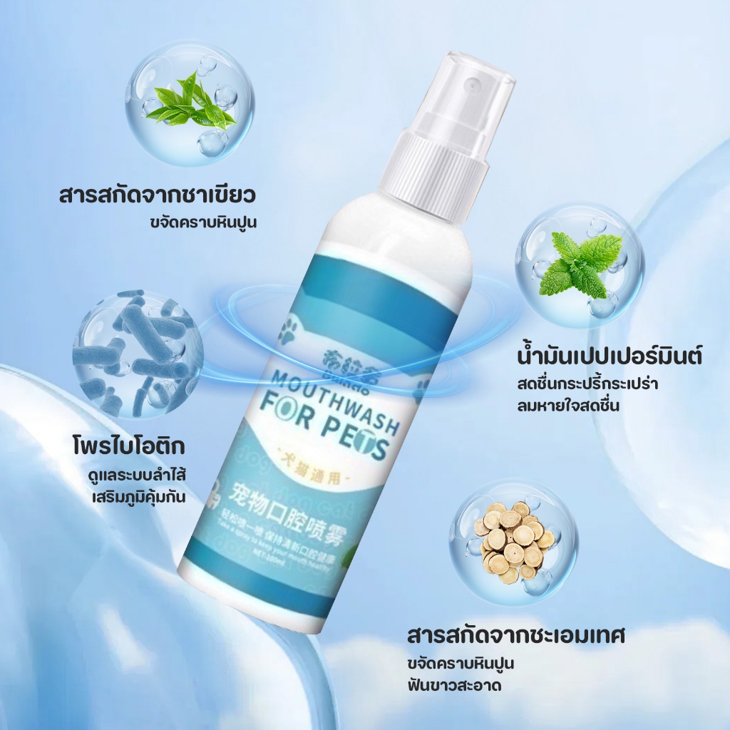 TUBI สเปรย์ฉีดช่องปากสัตว์เลี้ยง น้ำยาบ้วนปากแมว น้ํายาดับกลิ่นปาก แมว สเปรย์ดับกลิ่นปากสุนัข