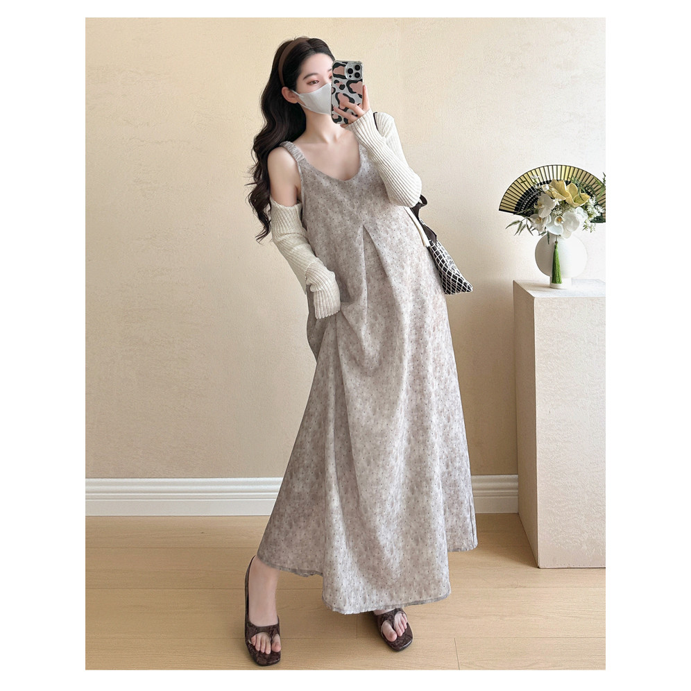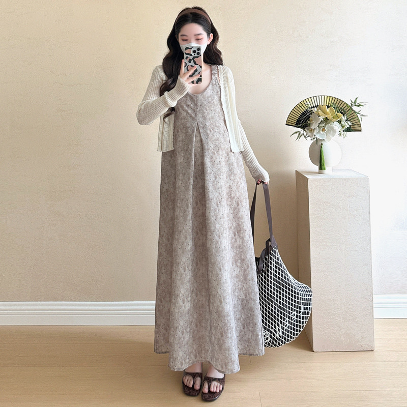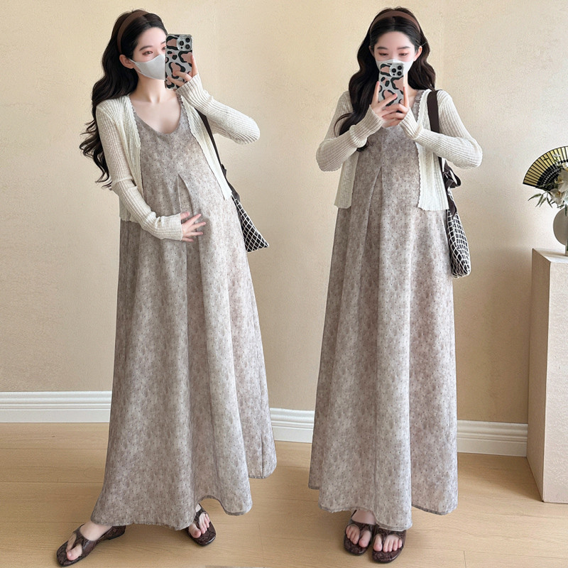 ชุดคลุมท้องฤดูร้อน ชีฟอง สลิงกระโปรงพร้อมคาร์ดิแกนขนาดเล็ก ชุดสองชิ้น