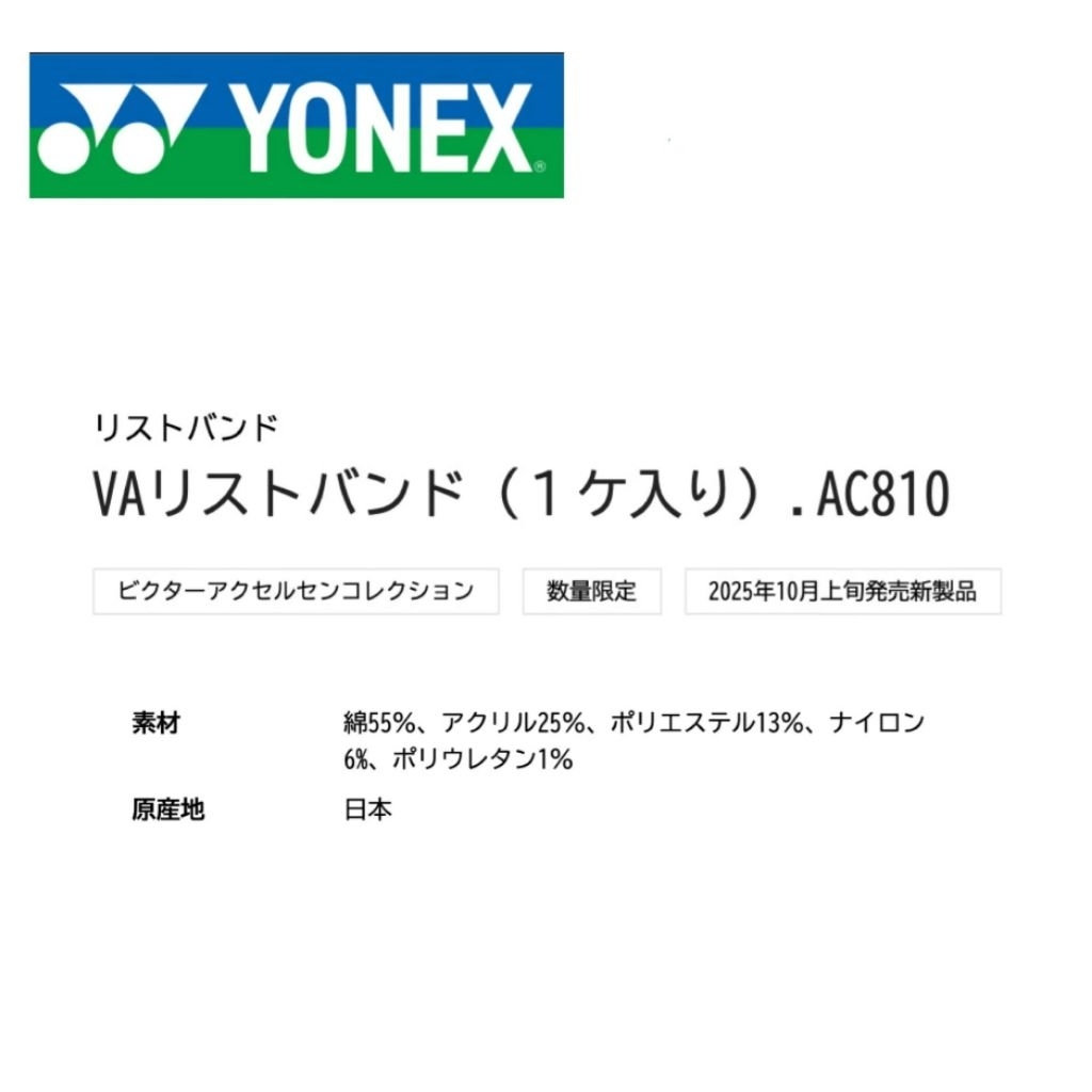 ?️(พร้อมส่ง??) YONEX VA (AC810) Made In Japan WRISTBAND ผ้ารัดข้อมือ (1 แพ็คมี 1 ชิ้น) Ver.JP สินค้ารับประกันของแท้ ?%