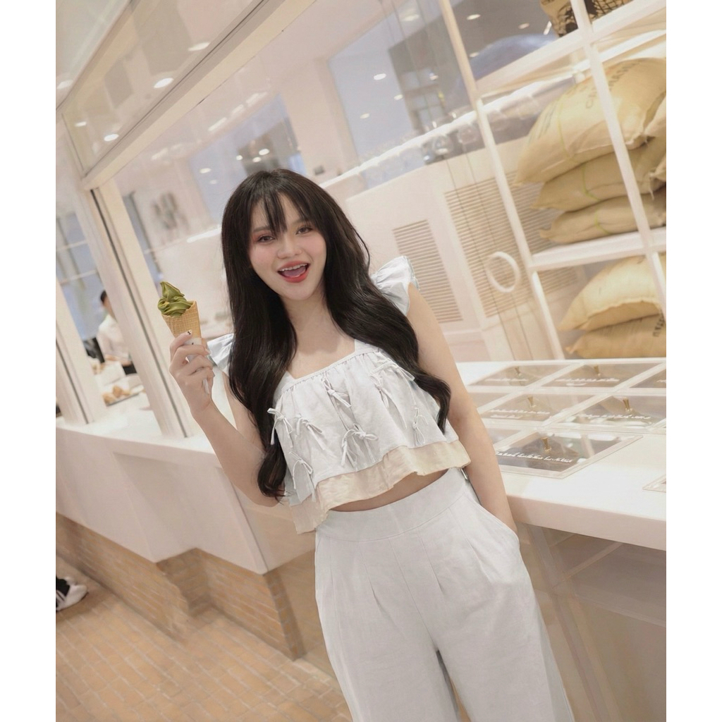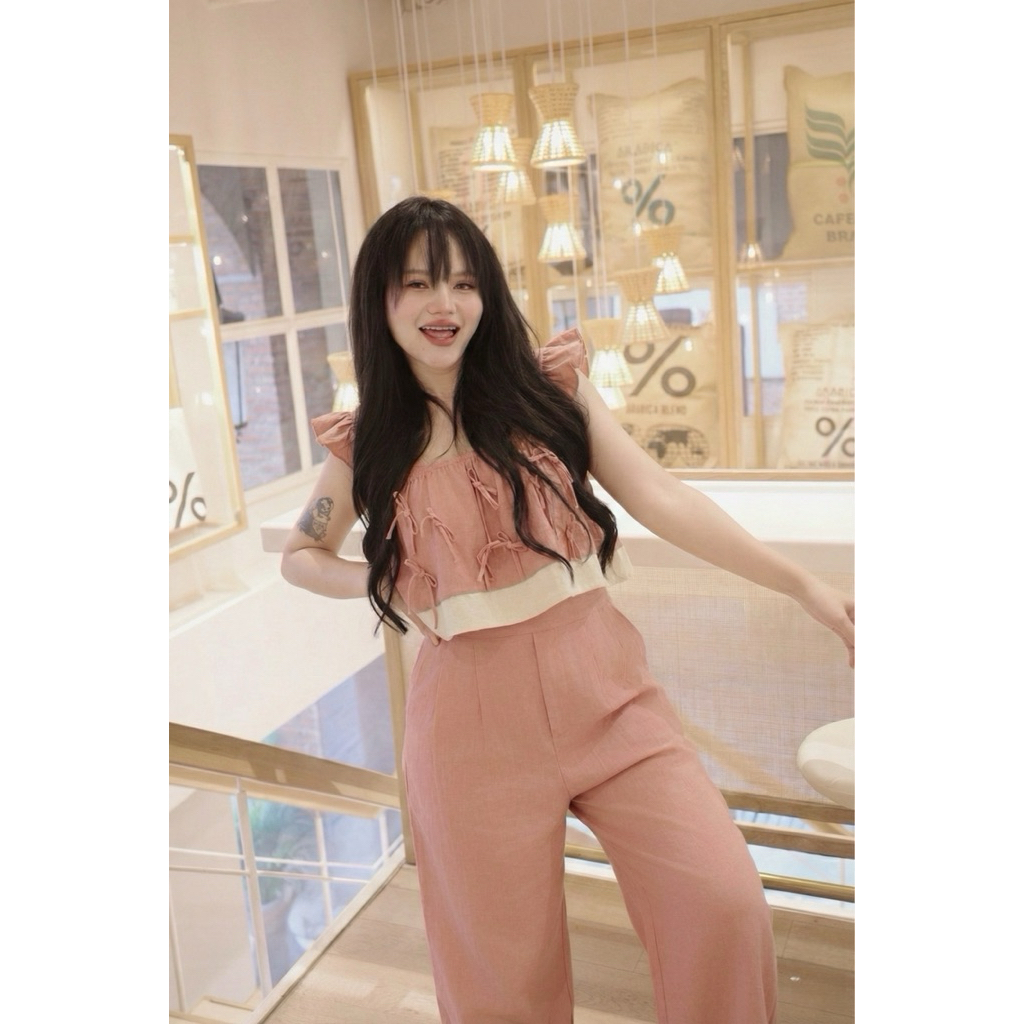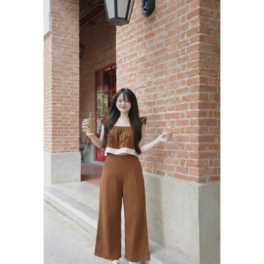 ชุดเซตสองชิ้นแขนระบาย เนื้อผ้าฝ้ายรหัส B08 เนื้อนุ่ม