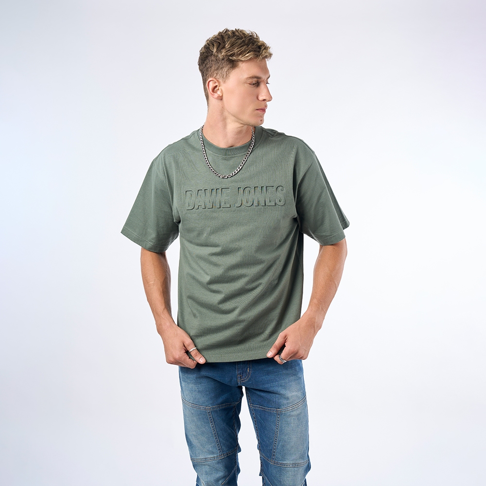 DAVIE JONES เสื้อยืด Logo Oversized Fit T-Shirt LG0155 สีกรม ดำ เขียว กากี