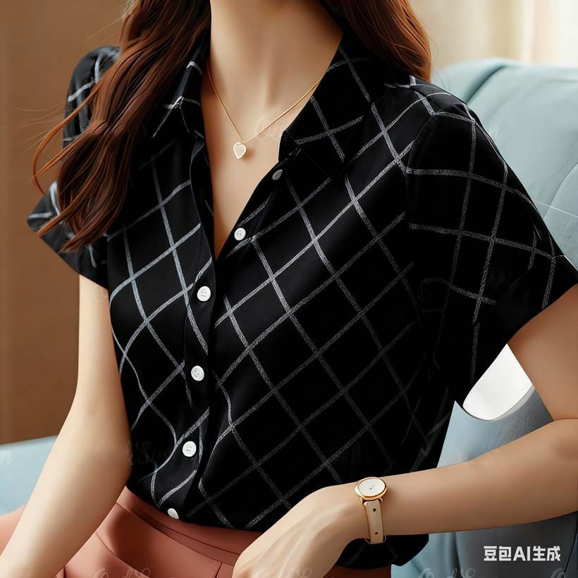 เสื้อเชิ้ตมินิมอลสำหรับผู้หญิง สีดำ พิมพ์ลายเต็มตัว กราฟฟิตี้สไตล์ฮาวาย แขนสั้น ไซส์ใหญ่