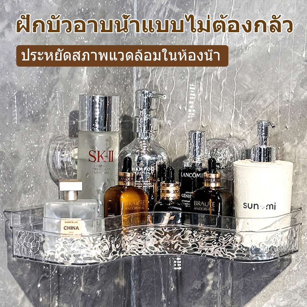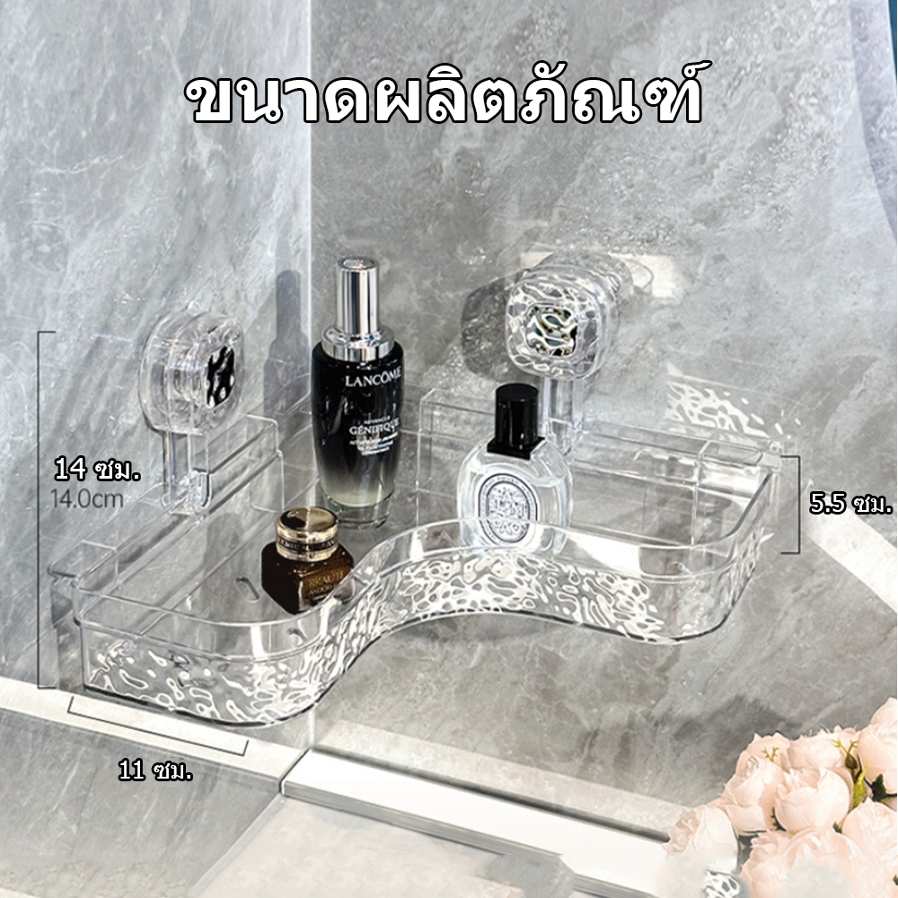 ชั้นวางของในห้องน้ำติดผนังสไตล์โมเดิร์น แบบใสหรูหราพรีเมียม วัสดุอะครีลิคทนน้ำ 100% ไม่ต้องเจาะผนัง ติดตั้งง่ายด้วยกาวแร