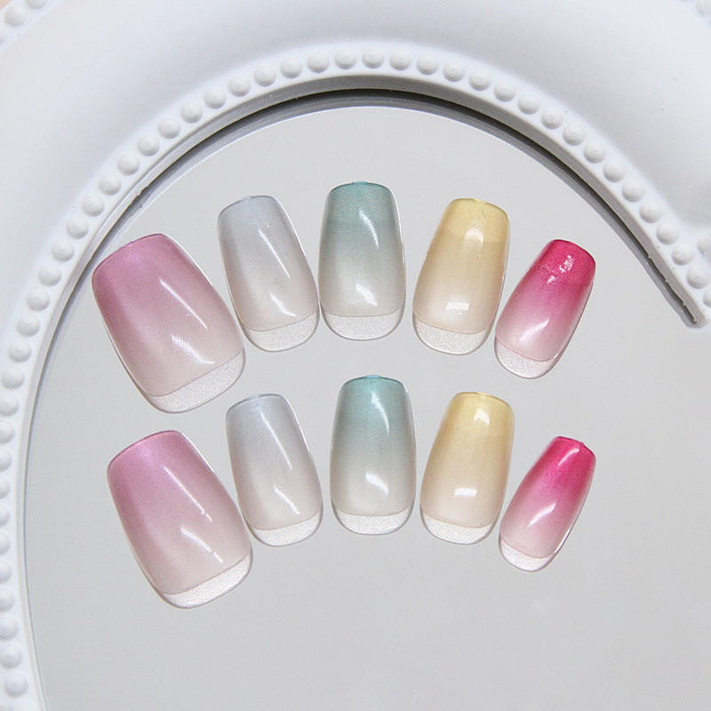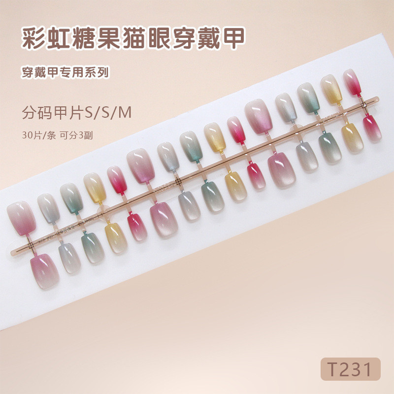 เล็บปลอมตาแมวสีรุ้งสไตล์เกาหลีสวมใส่เล็บน่ารักแผ่นแปะเล็บ Dopamine Girly ยุโรปสไตล์อเมริกัน ins