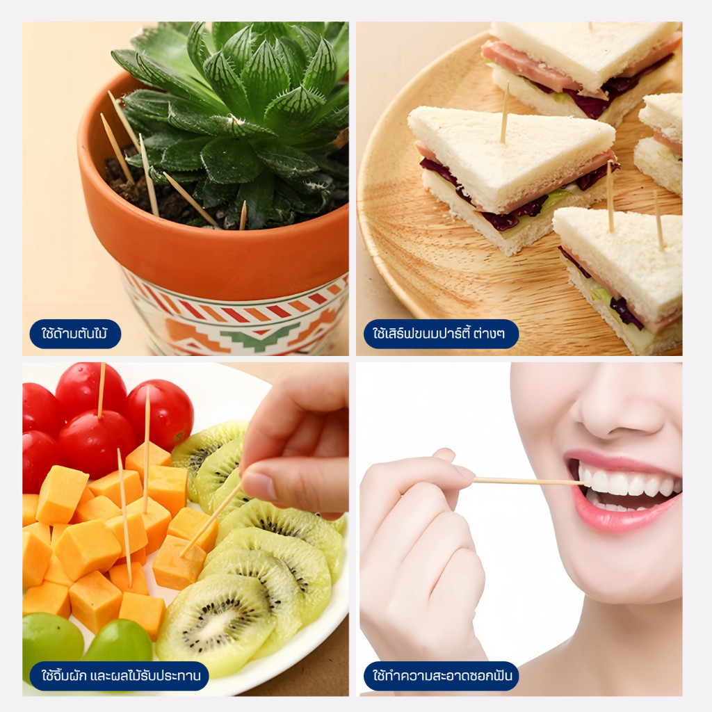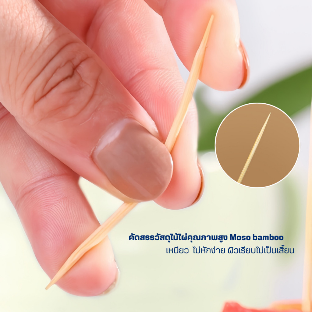 ไม้ไผ่โมโซะMOSO BAMBOO เพื่อสุขอนามัยที่ดี ไม้จิ้มฟันอเนกประสงค์ปลายแหลม2ด้าน ใช้งานได้หลากหลาย ไม่ว่าจะเป็นใช้ดามต้นไม้ ใช้กับแซนวิชอาหารขนมปาร์ตี้ จิ้มผักและผลไม้ หรือใช้ทำความสะอ