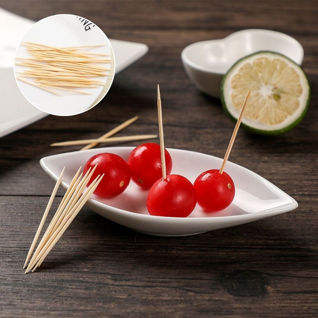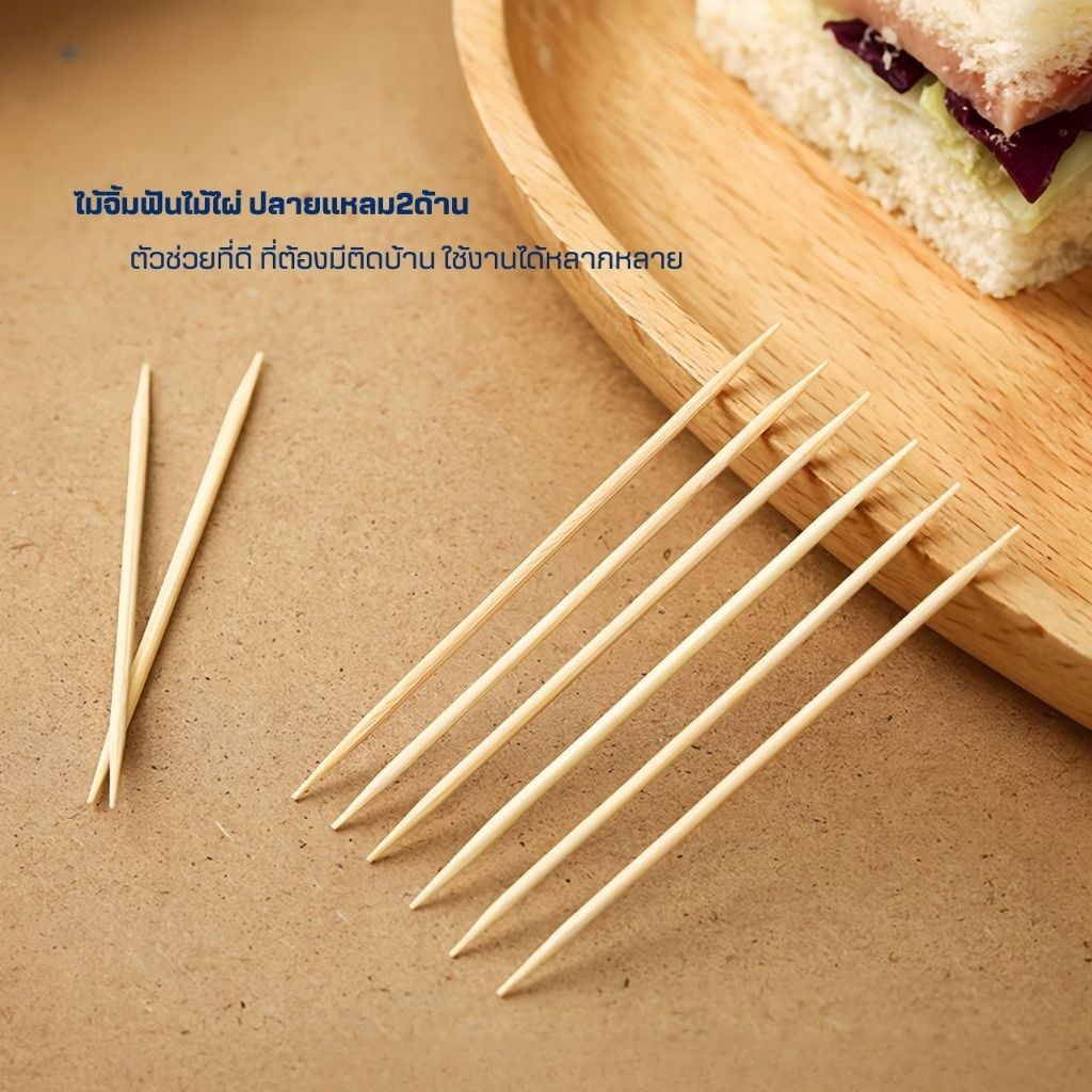 ไม้จิ้มฟันไม้ไผ่ธรรมชาติ(100ชิ้น)แบบปลายแหลมสองหัว พกพา ไม้จิ้มฟันในร้านอาหาร ครัวเรือน เครื่องครัว ชุดช้อนส้อม