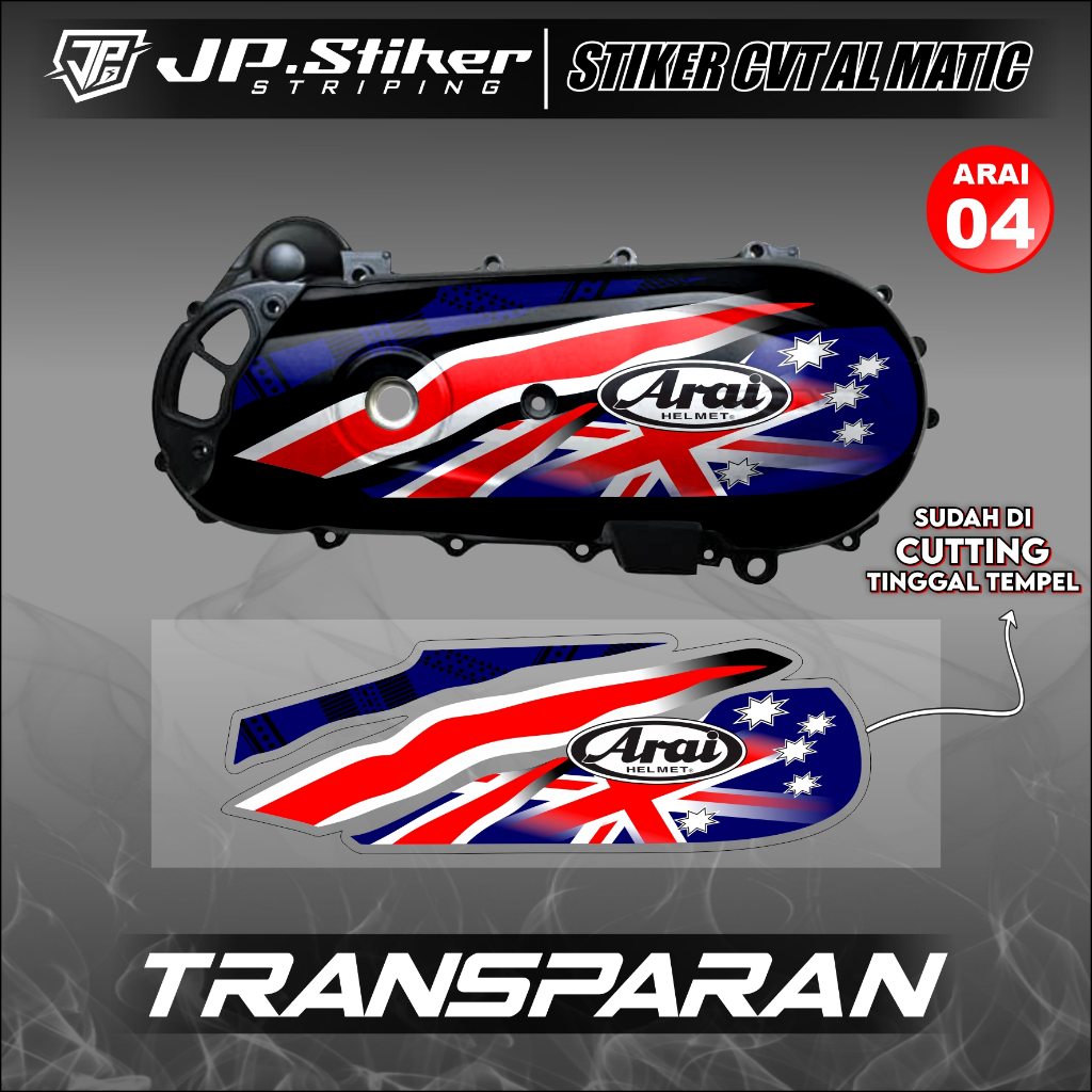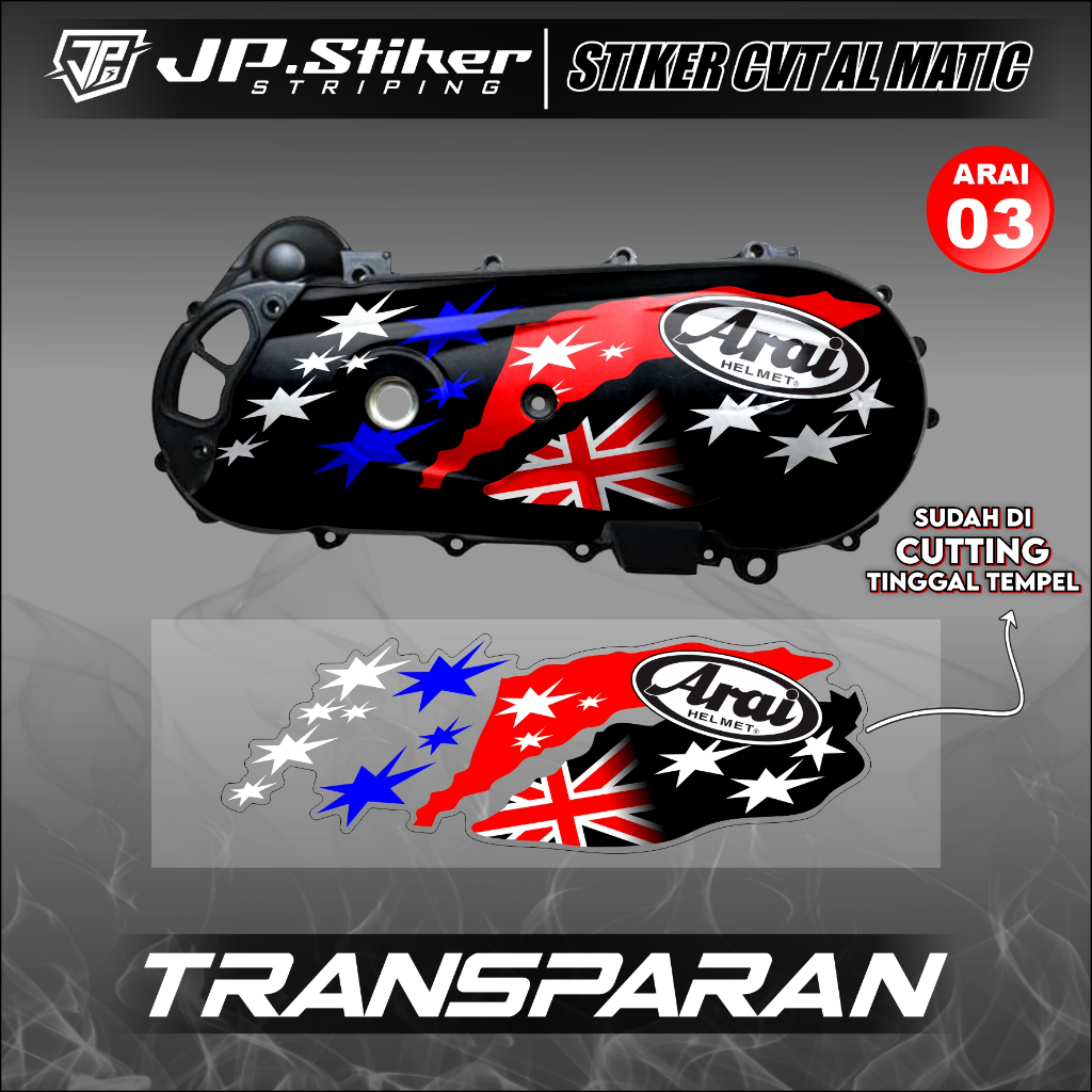 สติ๊กเกอร์บล็อก Arai CVT พร้อมลายไฟโปร่งใส ตัดด้วย All Automatic Beat Scoopy Mio Vario