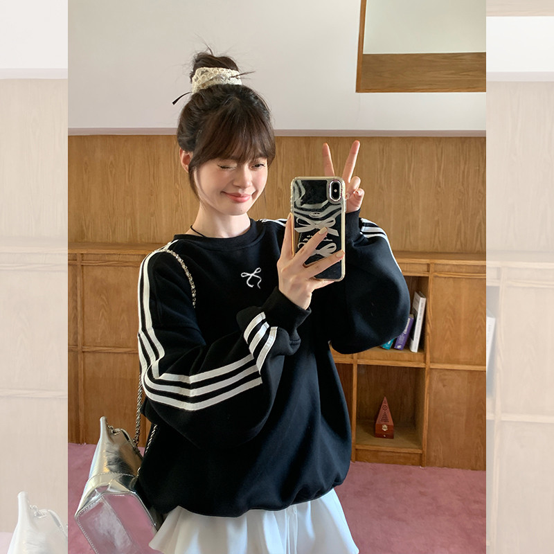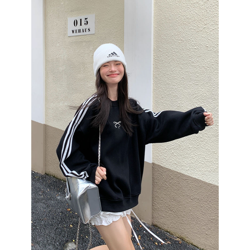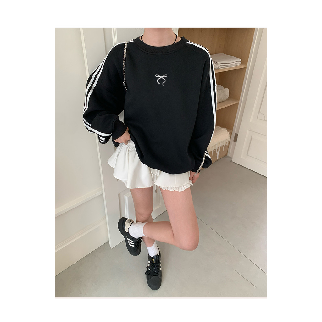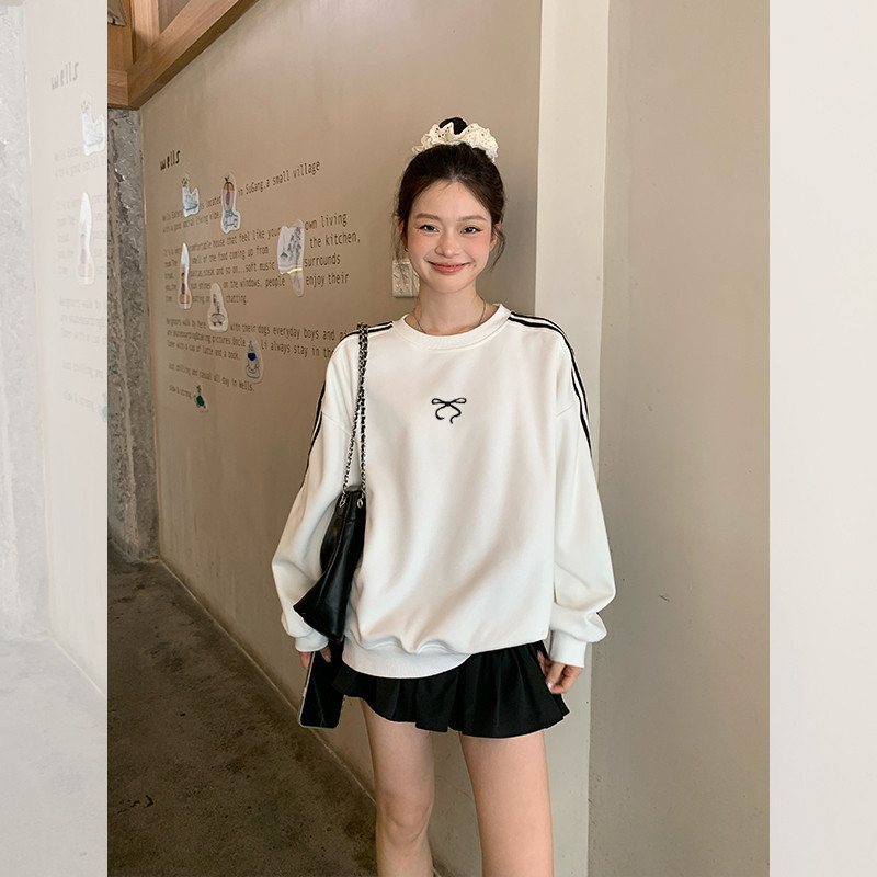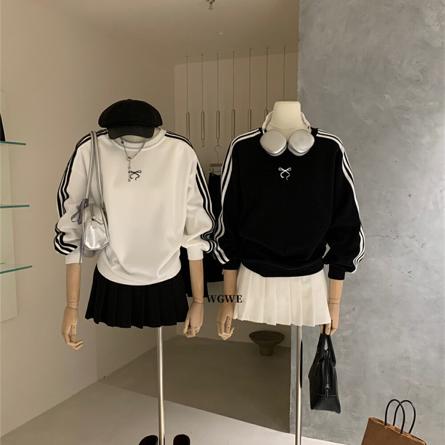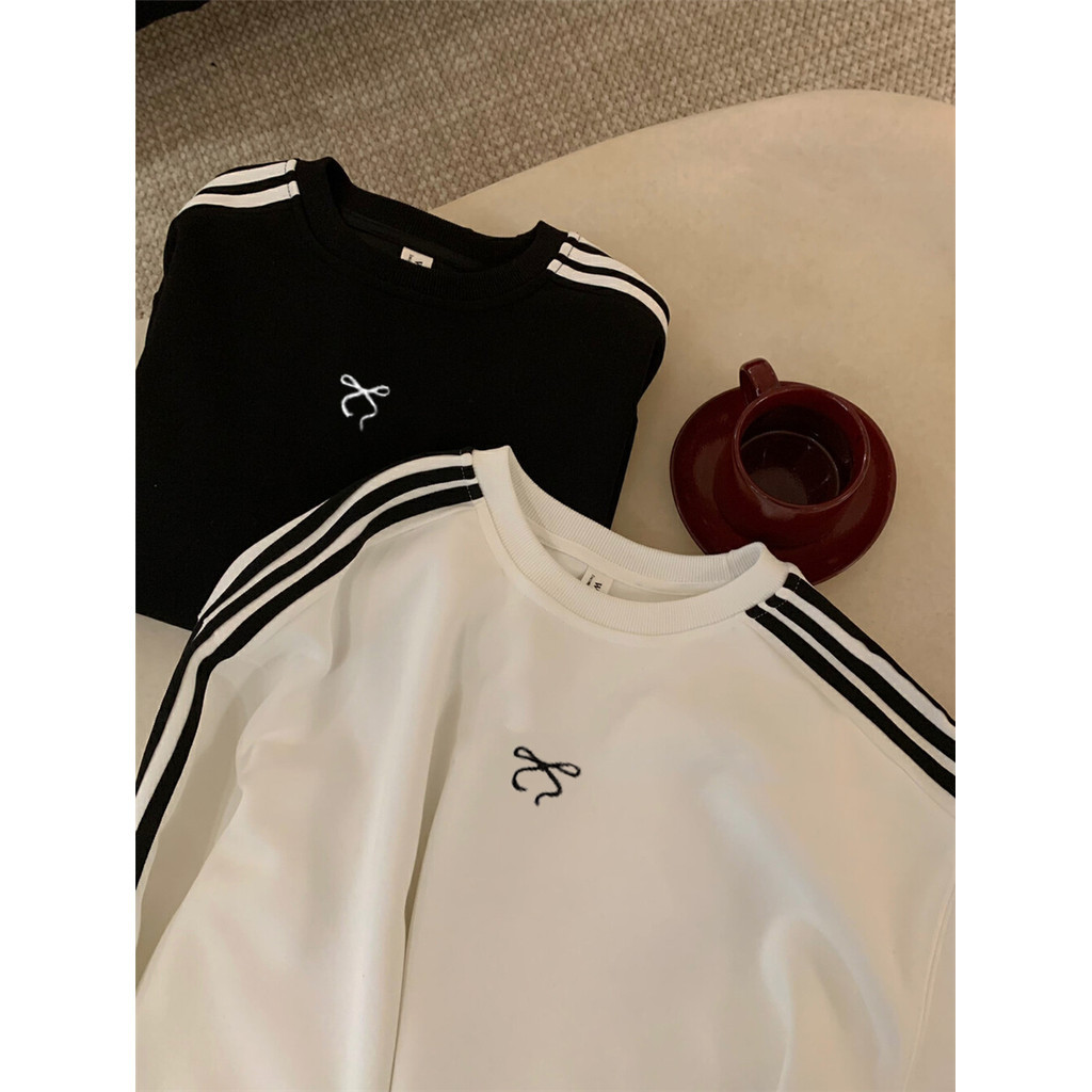 เสื้อสเวตเตอร์ผู้หญิง เสื้อกันหนาวแขนยาว คอกลมแบบ พิมพ์โบว์ สไตล์สปอร์ต