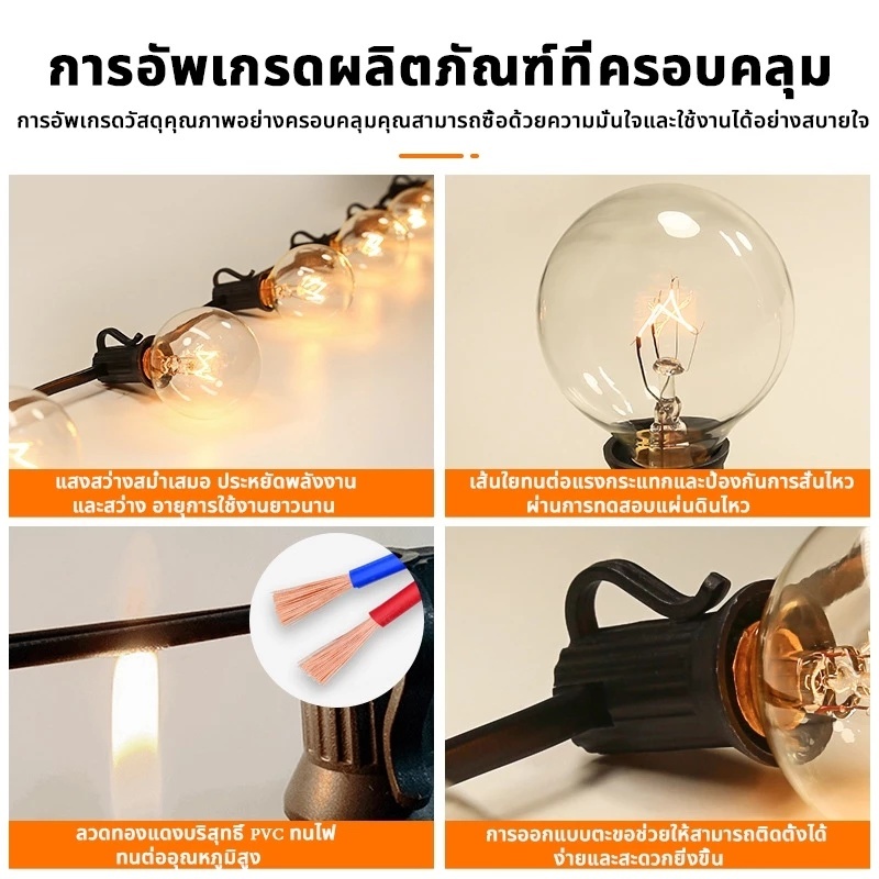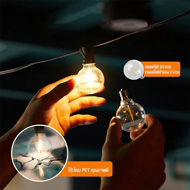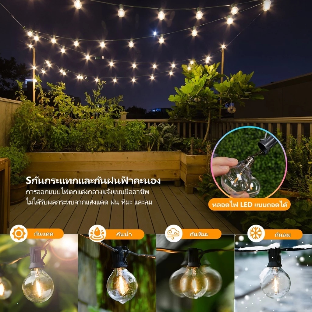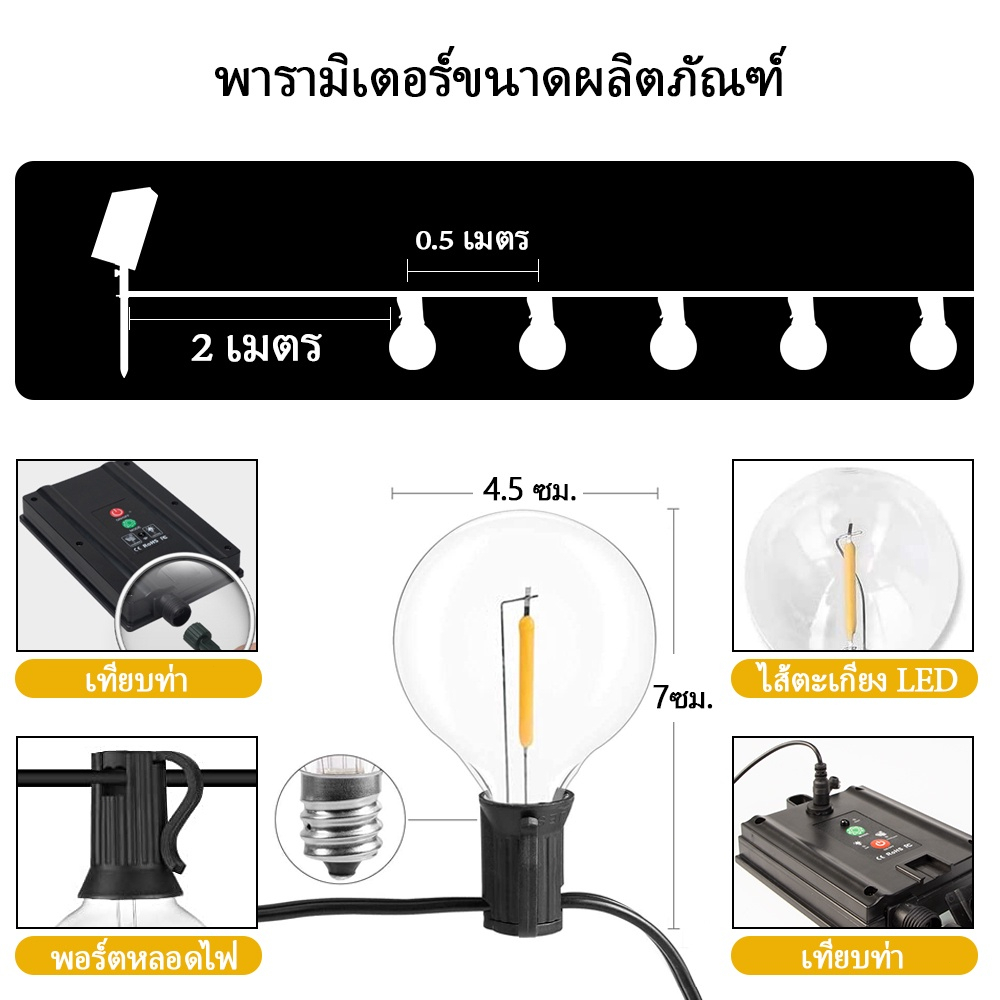 ไฟสวนโซล่าเซลล์ G40, ไฟสวน, ขั้ว E12 กันน้ำ, ไฟปิงปอง LED, ไฟย้อนยุค, ไฟตกแต่ง
