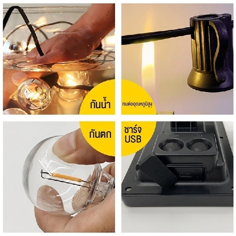 7M-10 หลอด-โซล่าเซลล์ + หลอด USB ระยะ 0.6 เมตร สายไฟ 1.6 เมตร ความยาวรวม 7 เมตร 10 หลอด