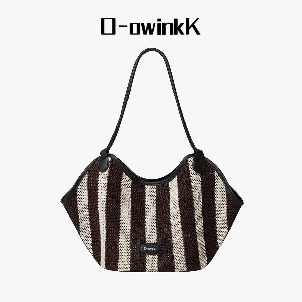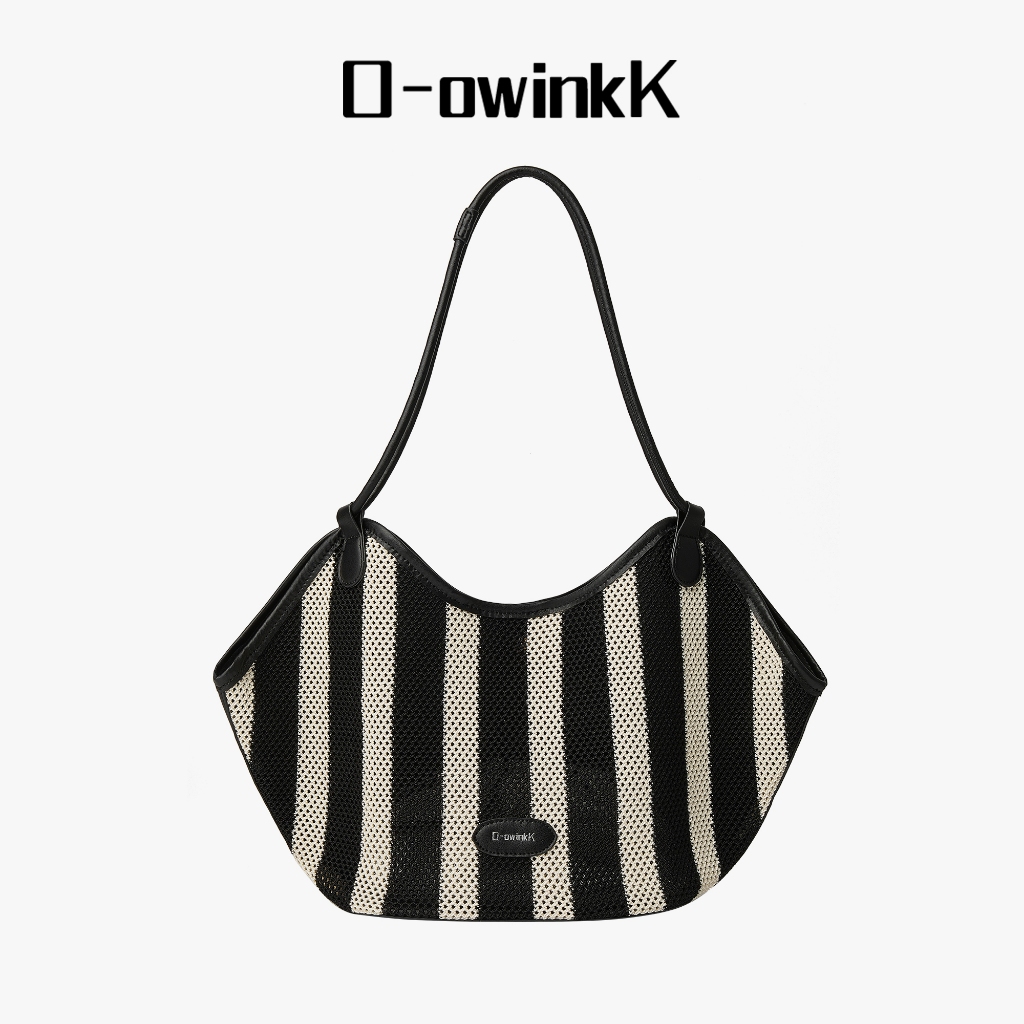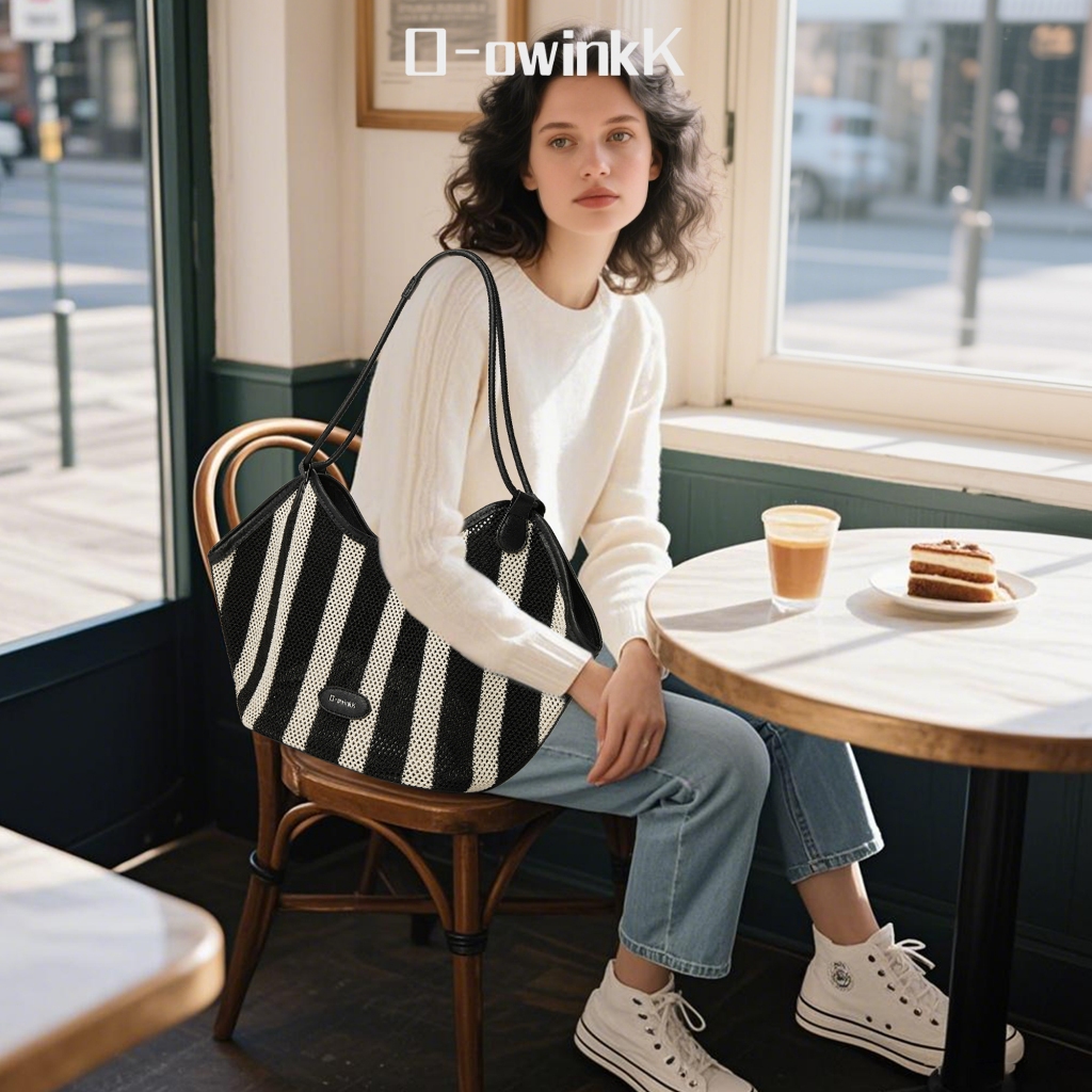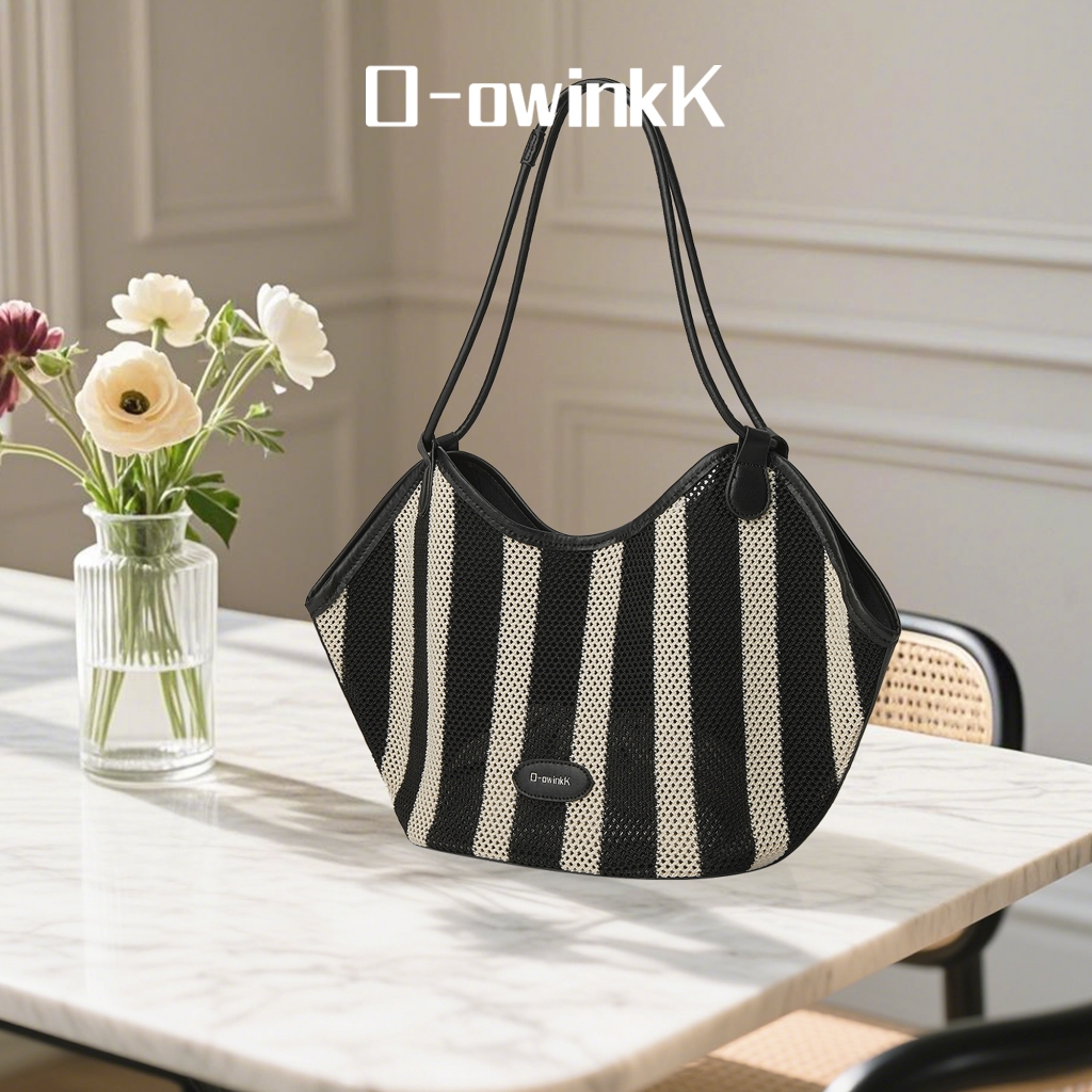 OWINKK Charm Bag กระเป๋าสตรีลายทางเจาะรู ความจุใหญ่ สไตล์แฟชั่น น้ำหนักเบาเเมตซ์ง่ายกับทุกลุค