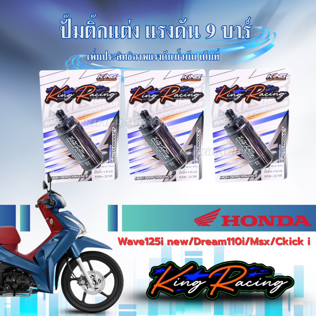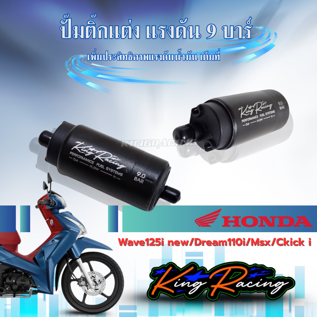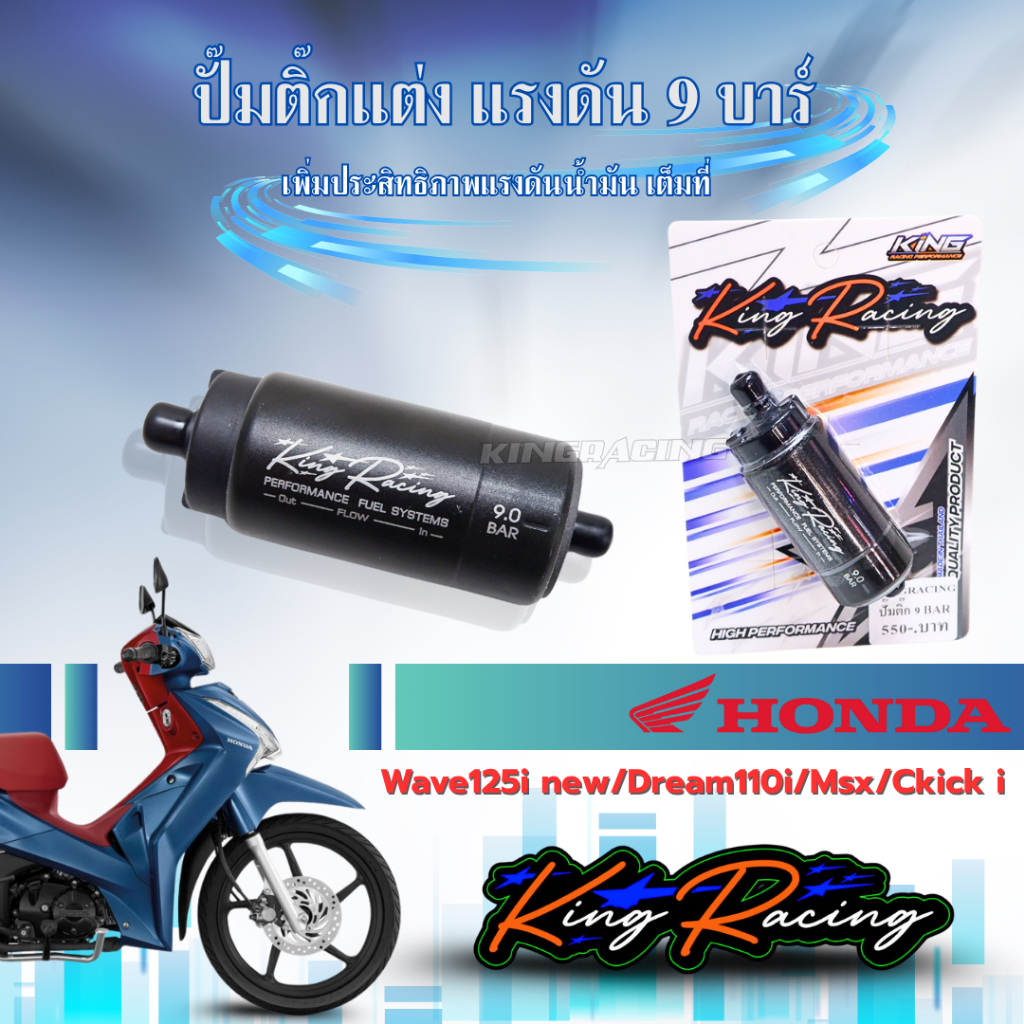 ปั๊มติ๊กแต่ง W125i มอเตอร์ปั๊มติ๊ก ปั๊มติ๊ก 9 บาร์ WAVE125ปลาวาฬ / CLICK125i (KING RACING) มีรับประกัน เหมาะกับรถแรง