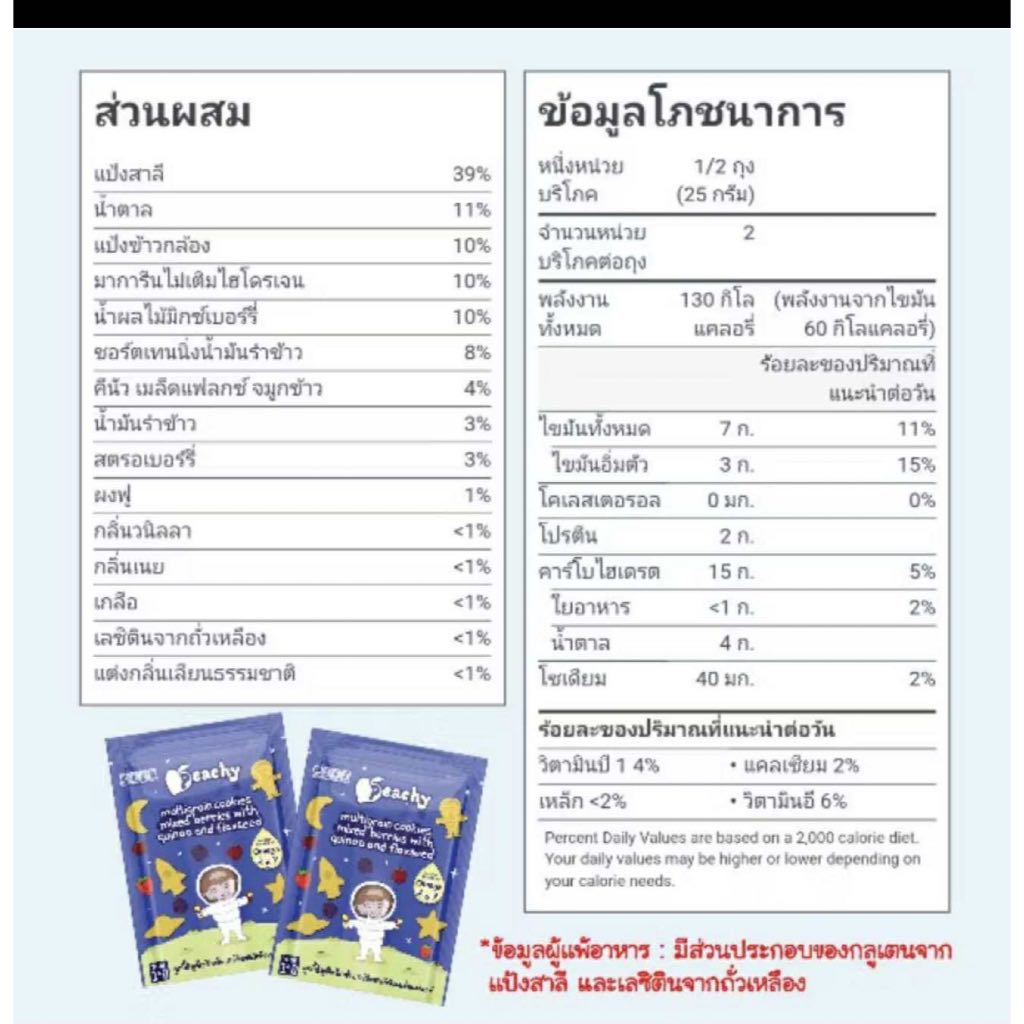 Peachy พีชชี่ ขนมเด็ก คุกกี้ธัญพืชผสมคีนัว ขนมสำหรับเด็กอายุ 1 ปีขึ้นไป