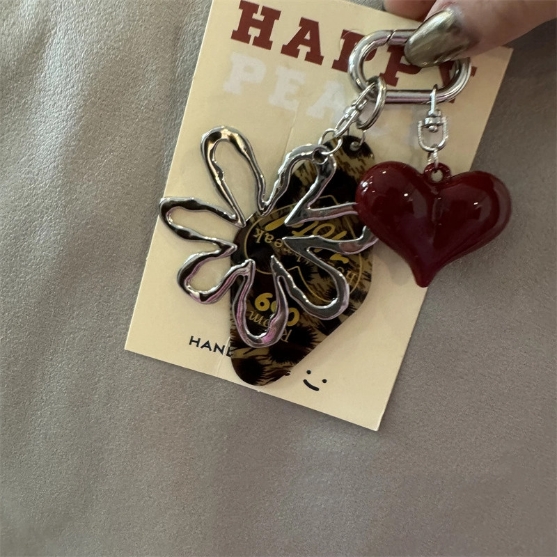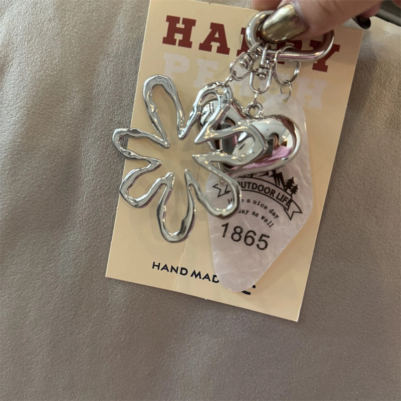 สไตล์หวานเย็นสไตล์ใหม่อะคริลิกลวงดอกไม้พวงกุญแจจี้สร้างสรรค์ที่ไม่ซ้ํากันกระเป๋าจี้คู่ของขวัญ