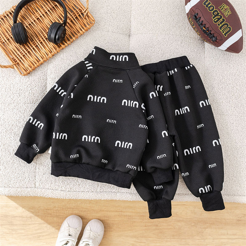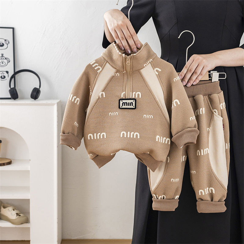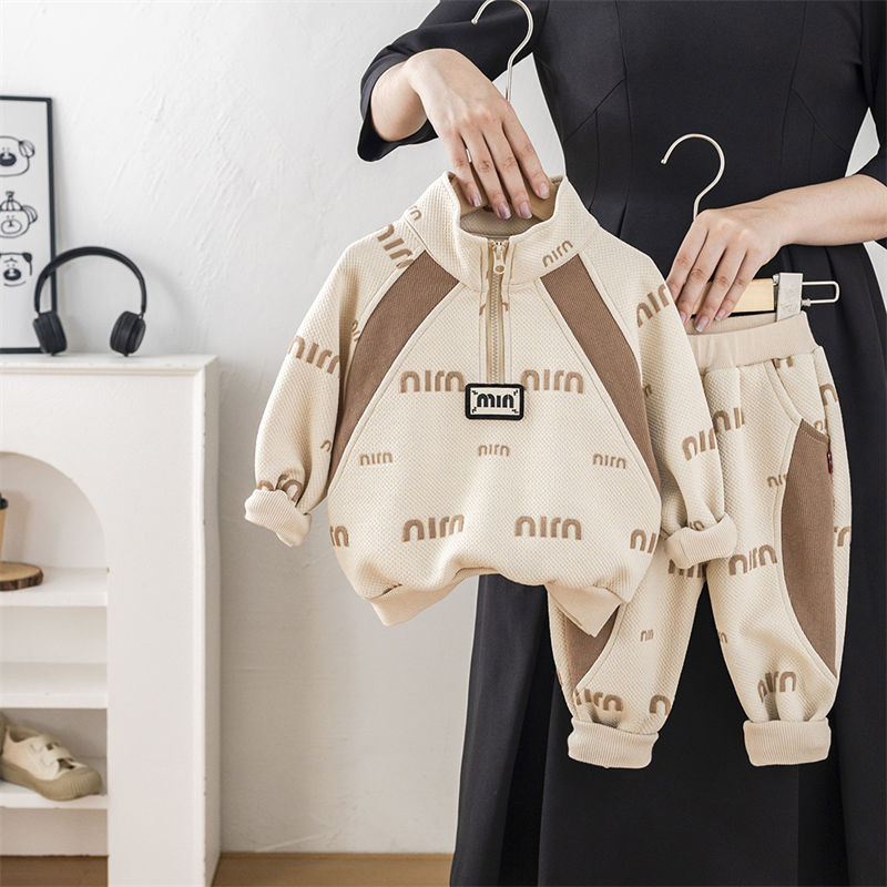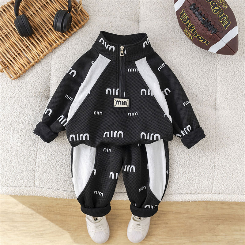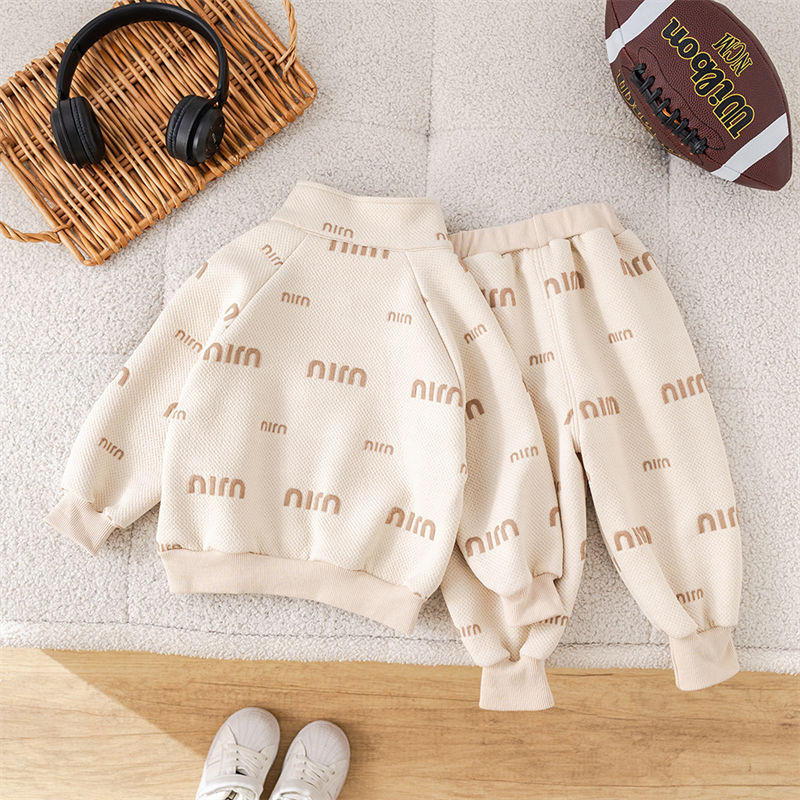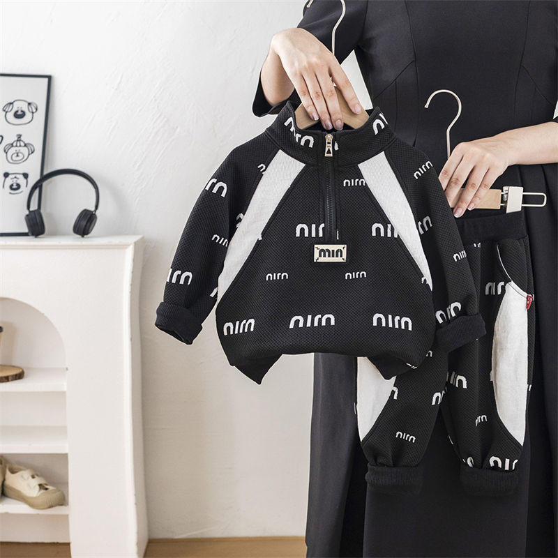 ชุดสองชิ้นแขนสั้นสำหรับทารกและเด็กวัยเรียน ทำจากผ้าแจ็คการ์ด ลายตัวอักษร ใส่สบายในทุกฤดูกาล