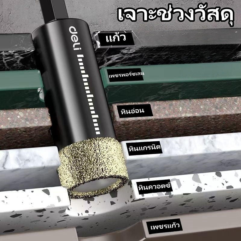 Deli โฮลซอกระเบื้องชุด สว่าน หัวเพชร ดอกเจาะกระจก เจาะหินแกรนิต ะเบื้องเซรามิคหินอ่อน