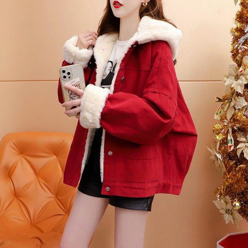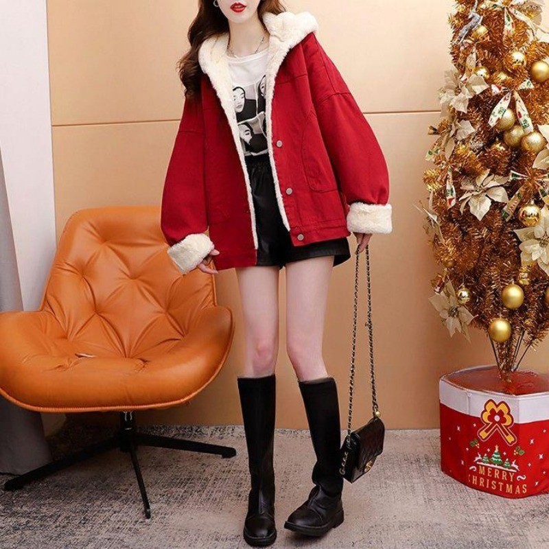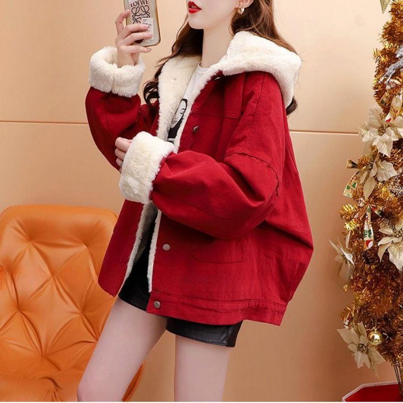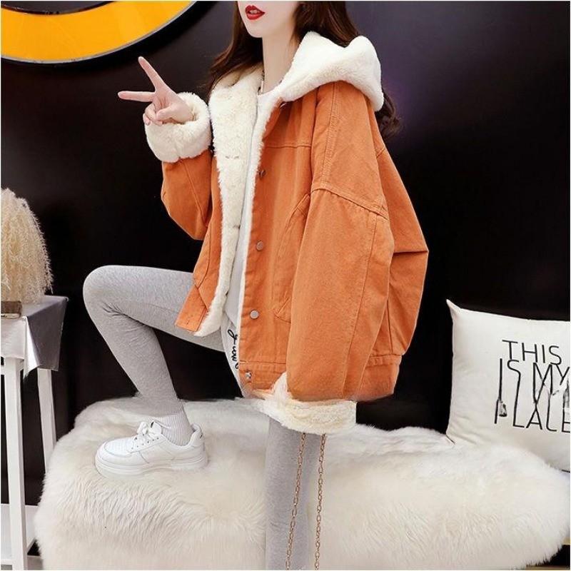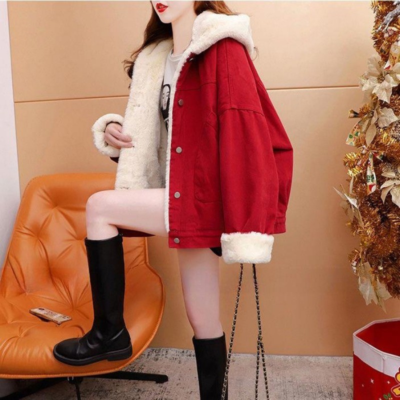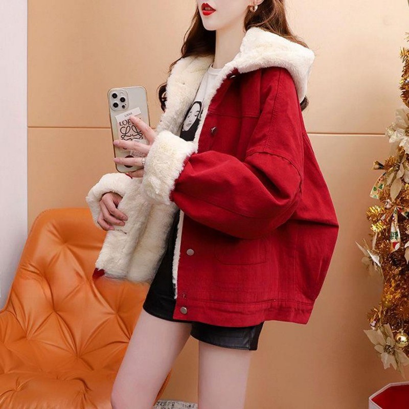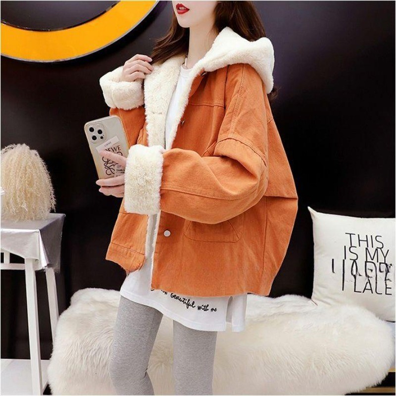 หลวม บวก กํามะหยี่หนาสีขาว อบอุ่น สั้น คลุมด้วยผ้า แจ็คเก็ตสําหรับฤดูใบไม้ร่วงและฤดูหนาวของผู้หญิง