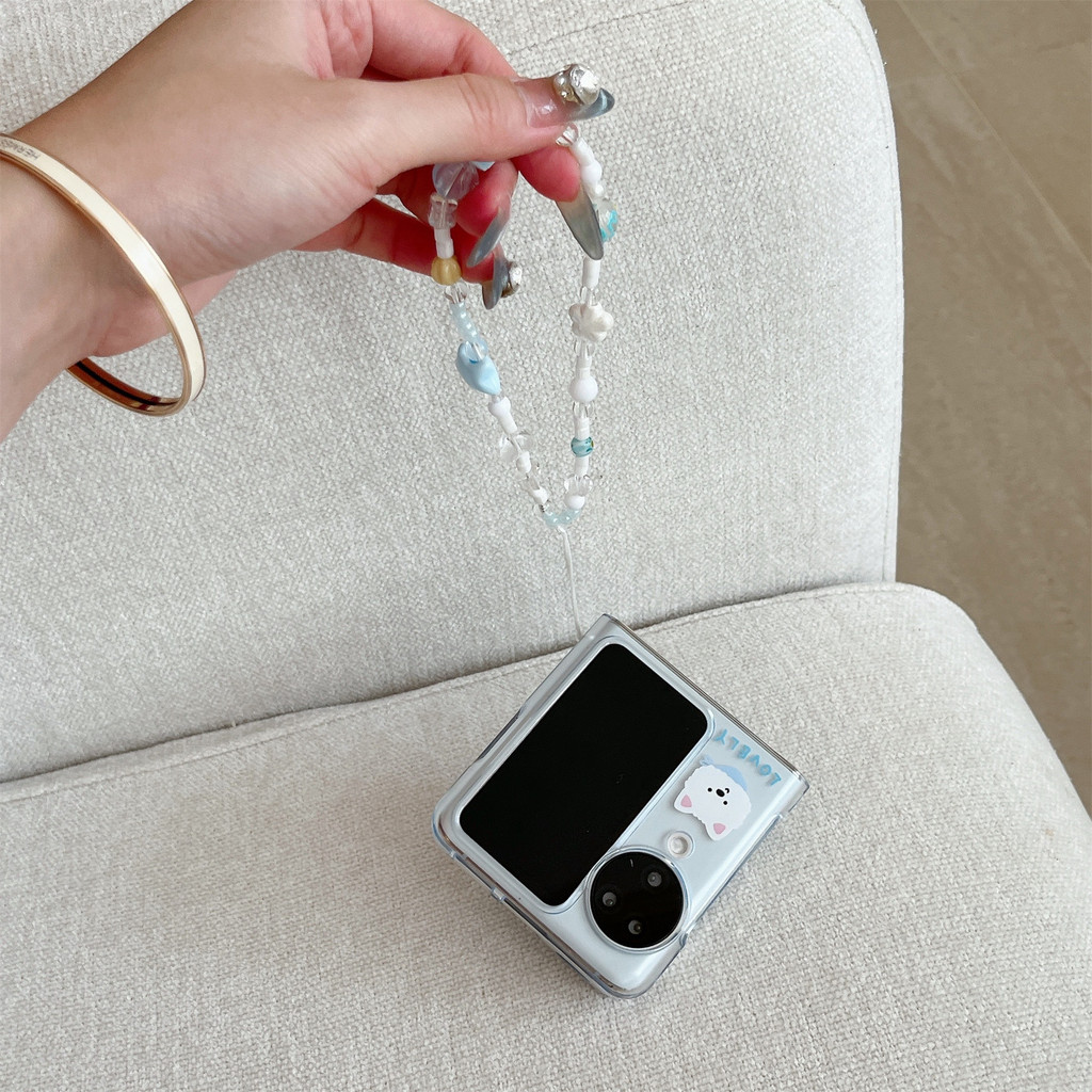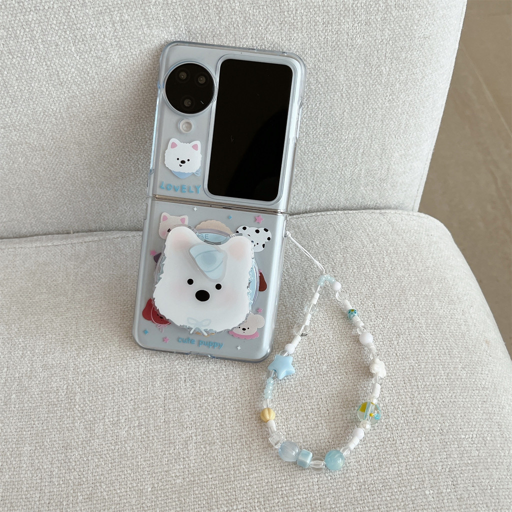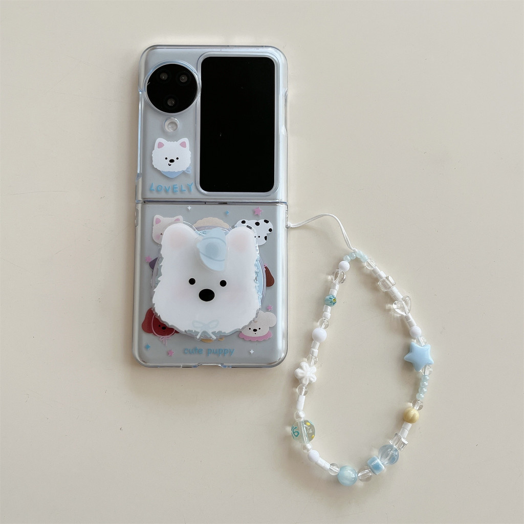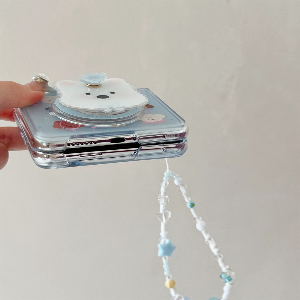 น่ารักเกาหลีแม่เหล็กลูกสุนัขสีฟ้าโทรศัพท์กรณีสุนัขวงเล็บโบว์สร้อยข้อมือสําหรับOPPOค้นหาN3 Flip N3Flip Findn3Flip N2Flipกันกระแทกปกหลัง