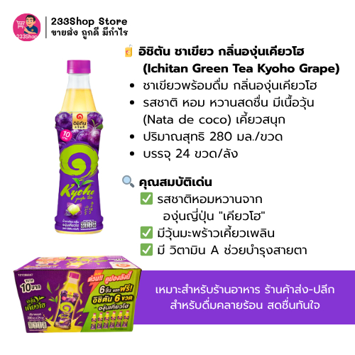 ? ชาเขียวพร้อมดื่ม กลิ่นองุ่นเคียวโฮ