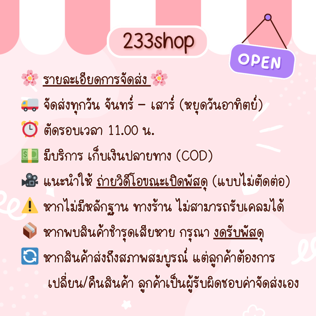 🚚 ใช้เวลาส่งสินค้า 2-7 วัน ขึ้นอยู่กับสินค้าแต่ละประเภท