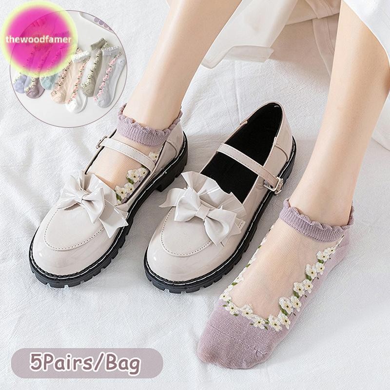 ดี 5 คู่ถุงเท้าสั้นระบายอากาศญี่ปุ่นน่ารักเล็กๆน้อยๆสดผู้หญิงถุงเท้าฤดูใบไม้ผลิฤดูร้อนบางถุงเท้าเรือ ไทย