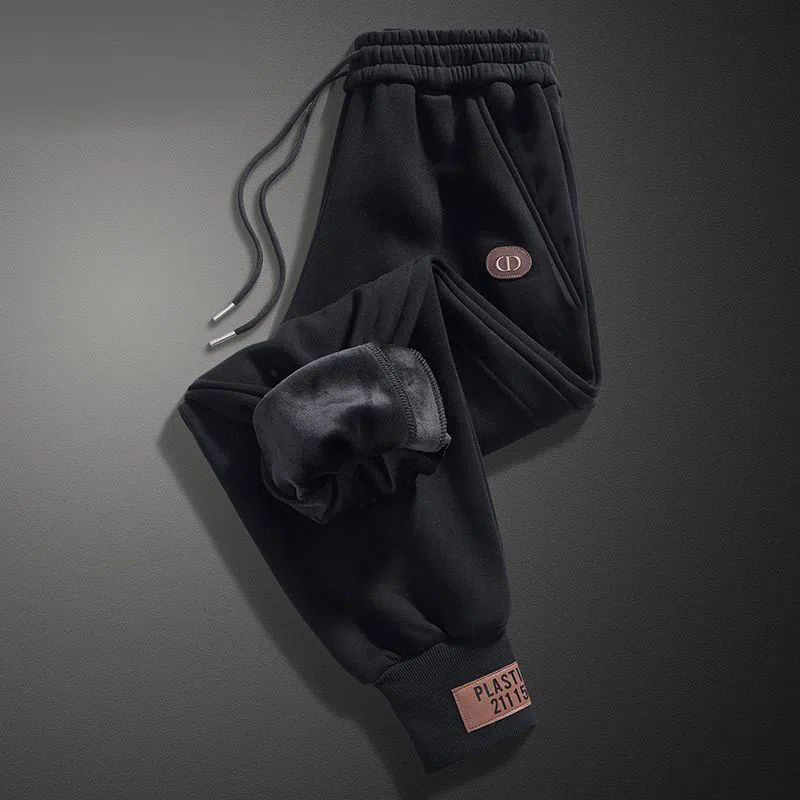 กางเกงขนแกะสีเหลืองสำหรับผู้ชาย แบบผูกขามีซิป หนานุ่มสวมใส่ง่าย加绒裤子男束脚休闲裤大码加厚黄拉链男士运动裤