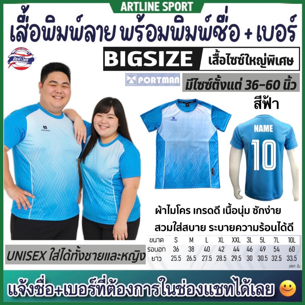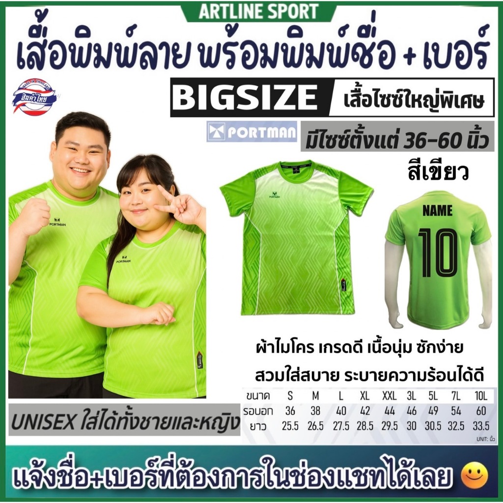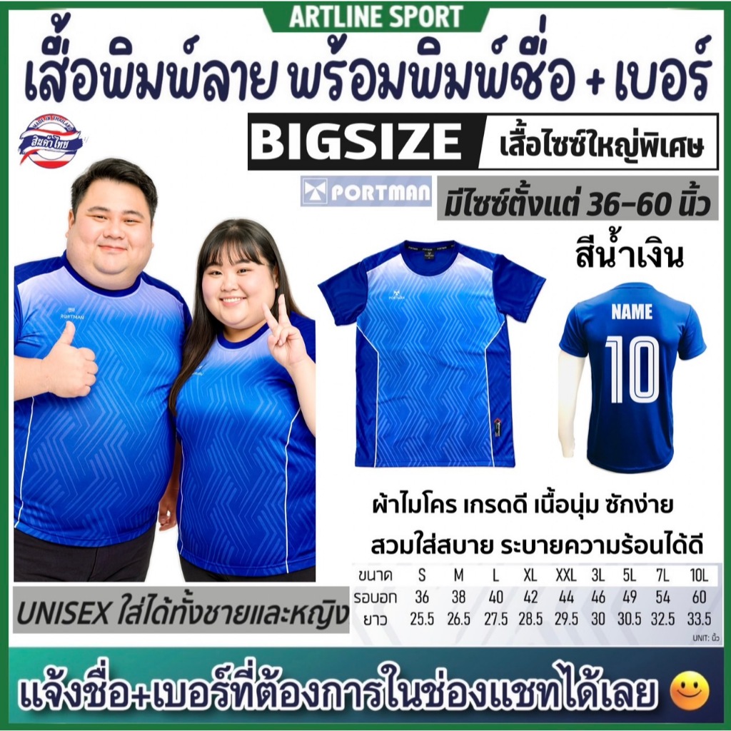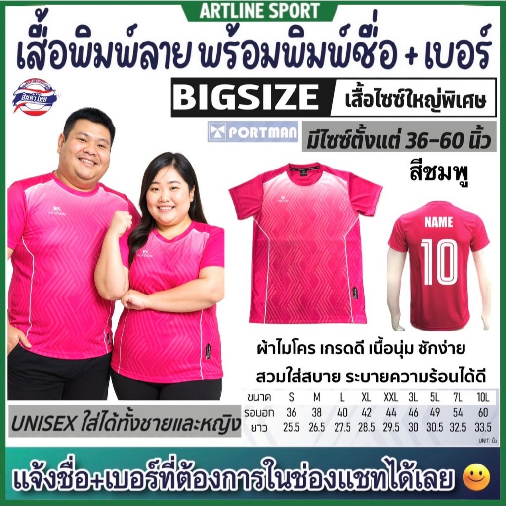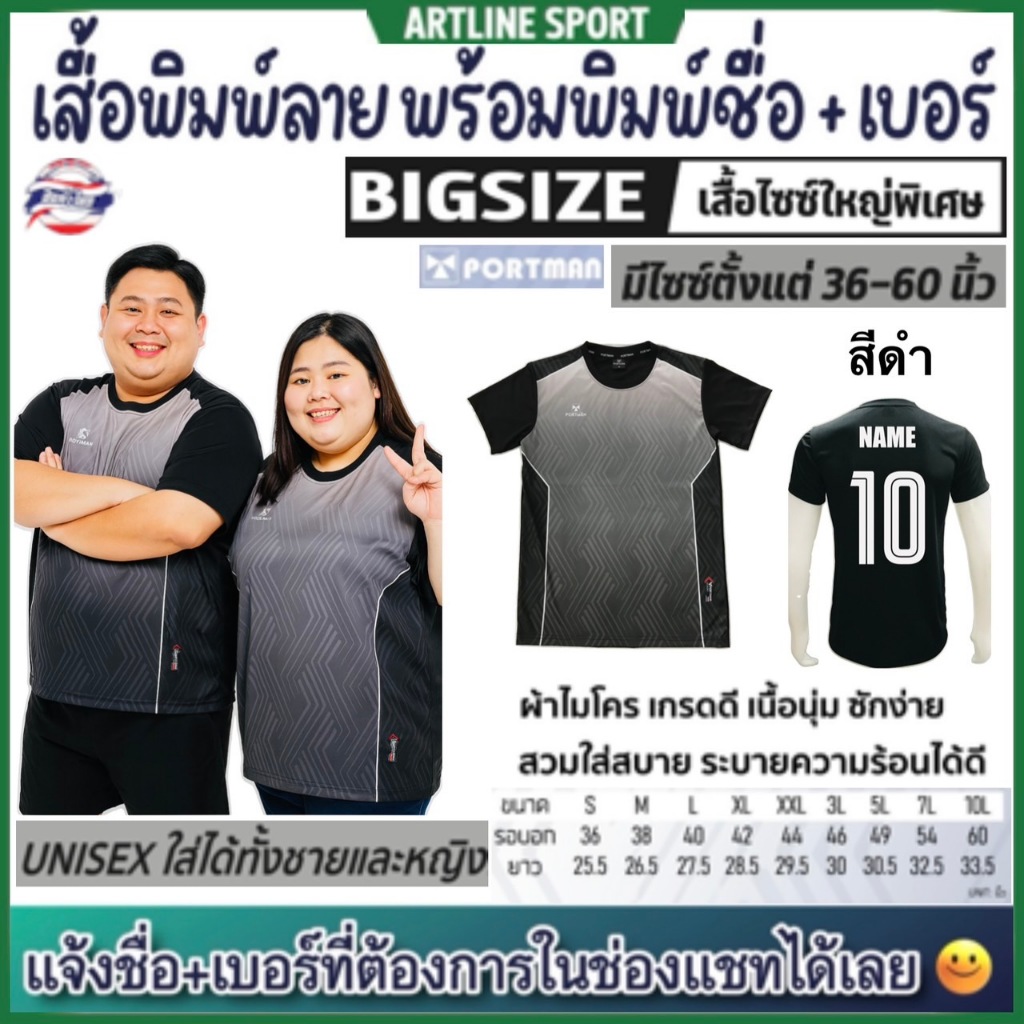 PORTMAN เสื้อพิมพ์ลายไซซ์ใหญ่พิเศษ พร้อมพิมพ์เบอร์+ชื่อ รุ่น PIM-03 แบรนด์ PORTMAN ของแท้ 100% (สินค้าไทย) -เสื้อกีฬาพิม
