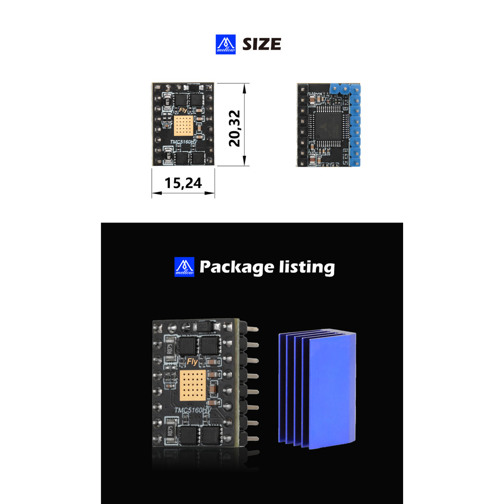 Mellow Fly TMC5160 HV 48V Max 4.4A Stepper Motor StepStick SPI Silent Driver สําหรับ Gemini Super ♾️ อะไหล่เครื่องพิมพ์ 3D บอร์ด