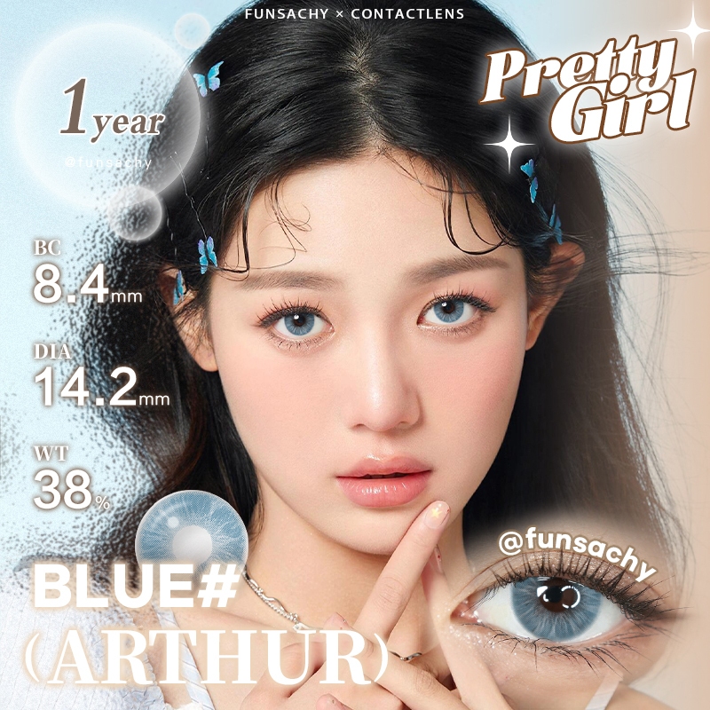 ARTHUR คอนแทคเลนส์สีฟ้าอ่อน ธรรมชาติ แฟชั่น ตาโต lens DIA14.2mm จัดส่งรวดเร็วภายในประเทศไทย FUNSACHY