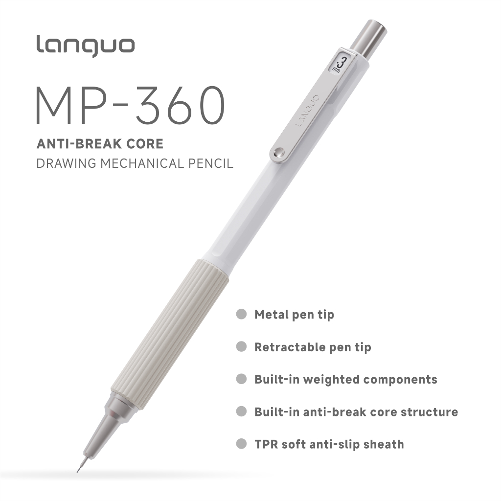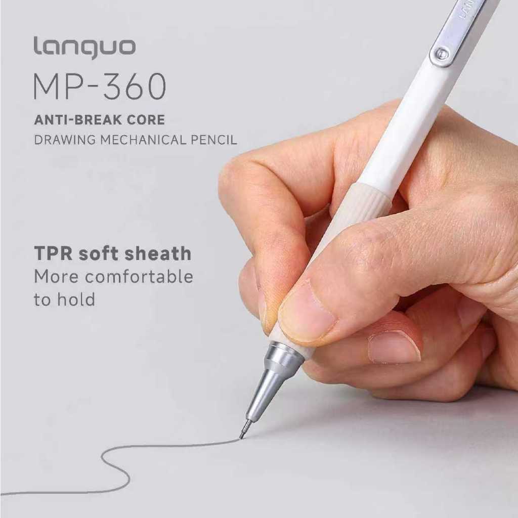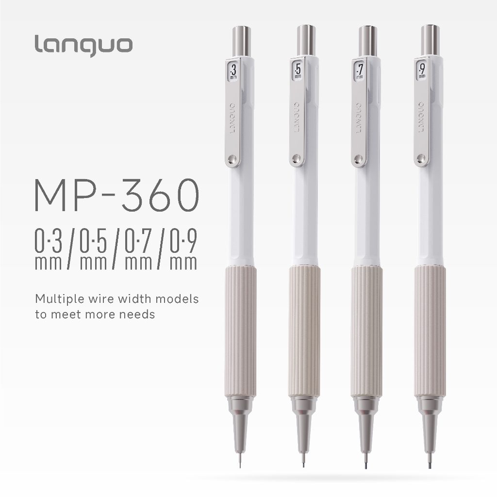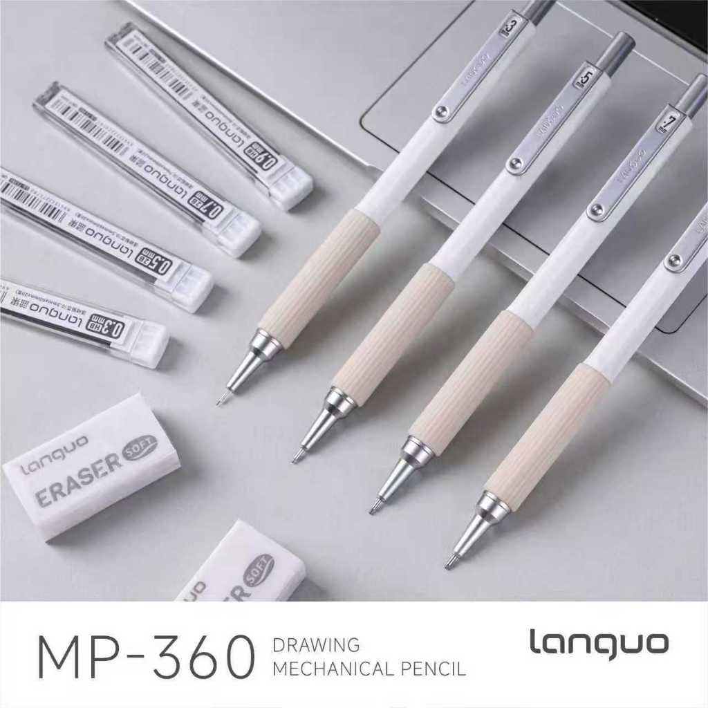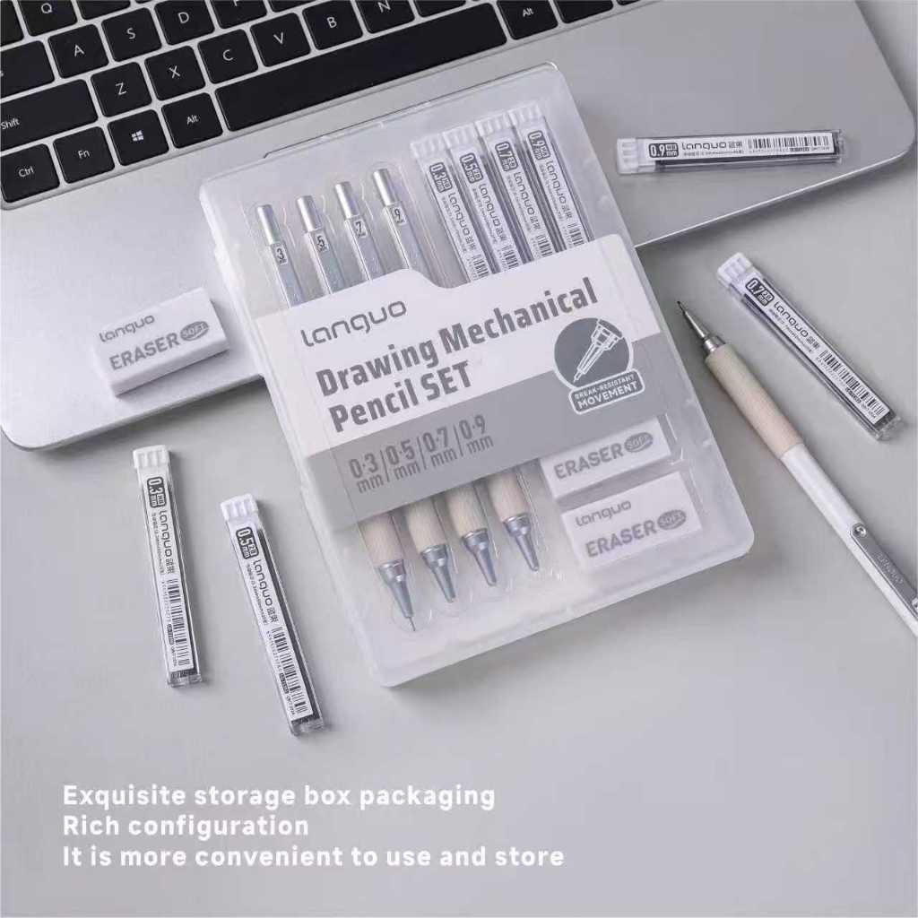 Languo upscale โลหะชุดดินสออัตโนมัติ,โลหะร่างดินสอ 0.3/0.5/0.7/0.9 มม.ดินสอ 4 หลอด, 3 ยางลบสําหรับเขียน