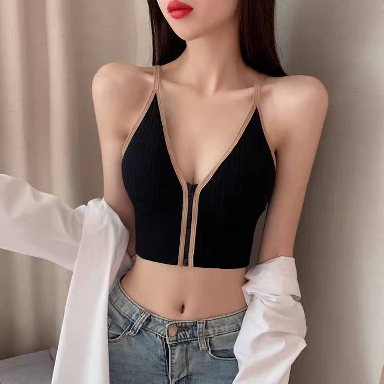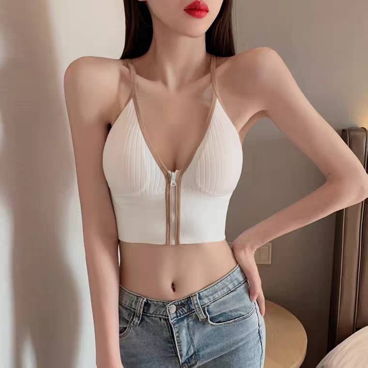 [ส่งจากไทย] ????????? #bra-130 ครอปทอป ซิปกลาง ใสแล้ว Sexy มีฟองน้ำในตัว