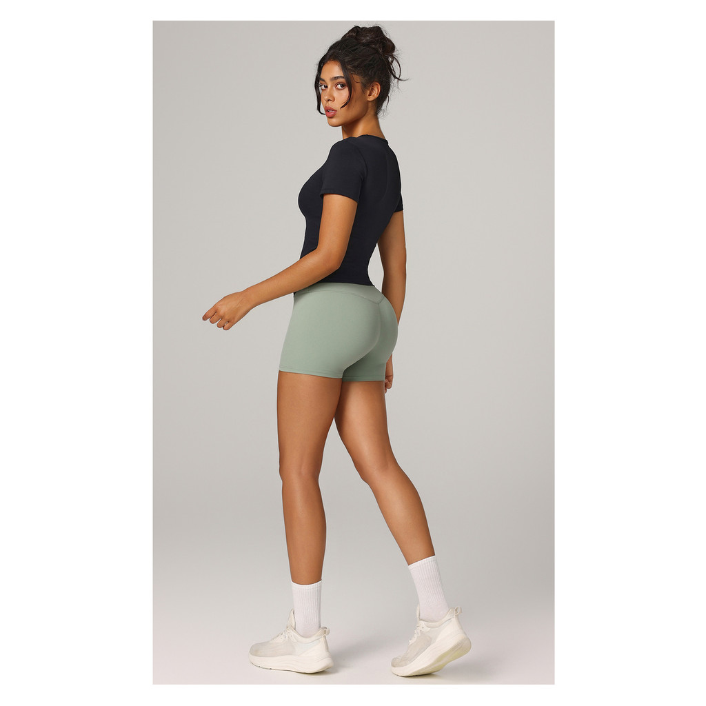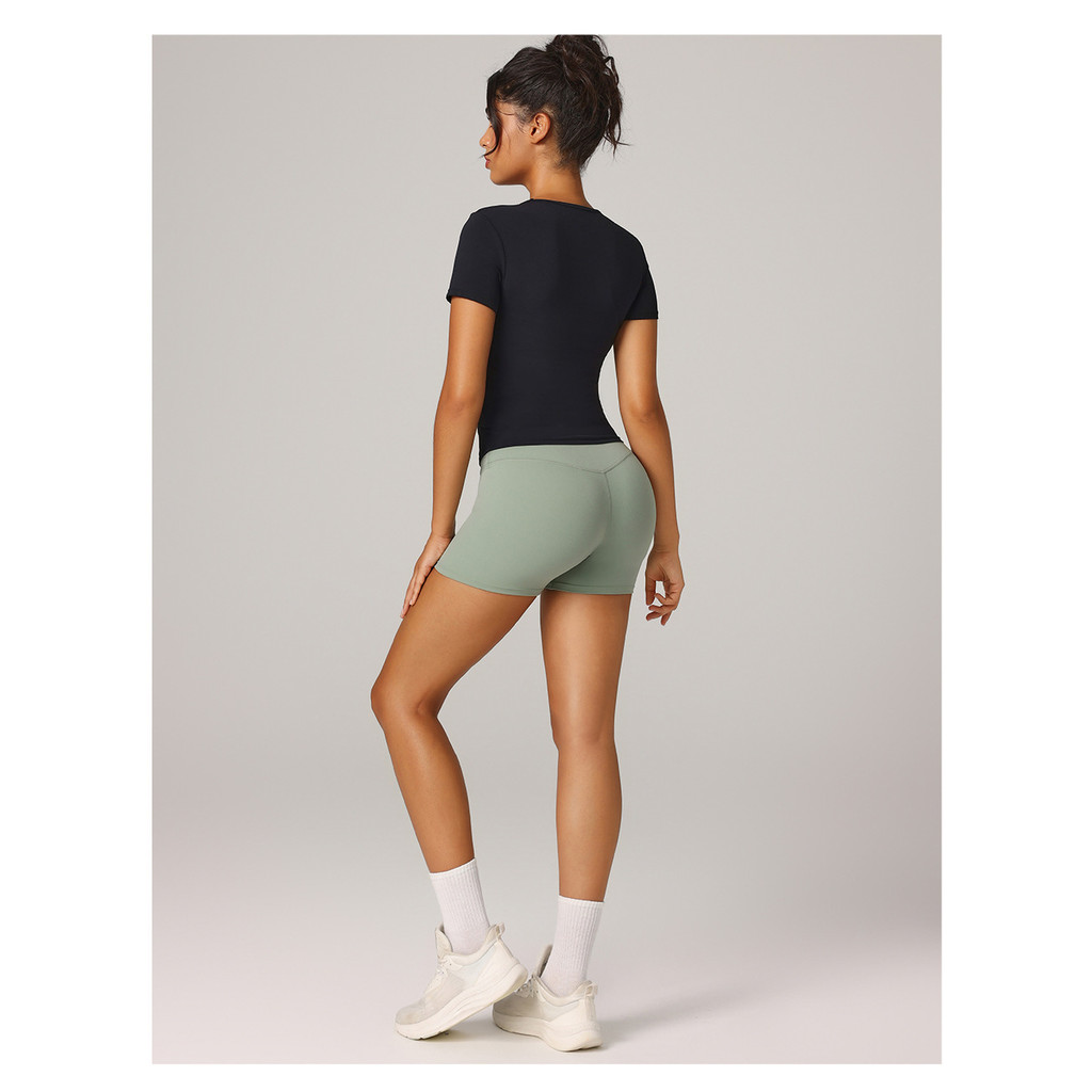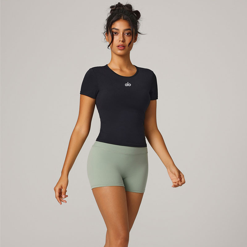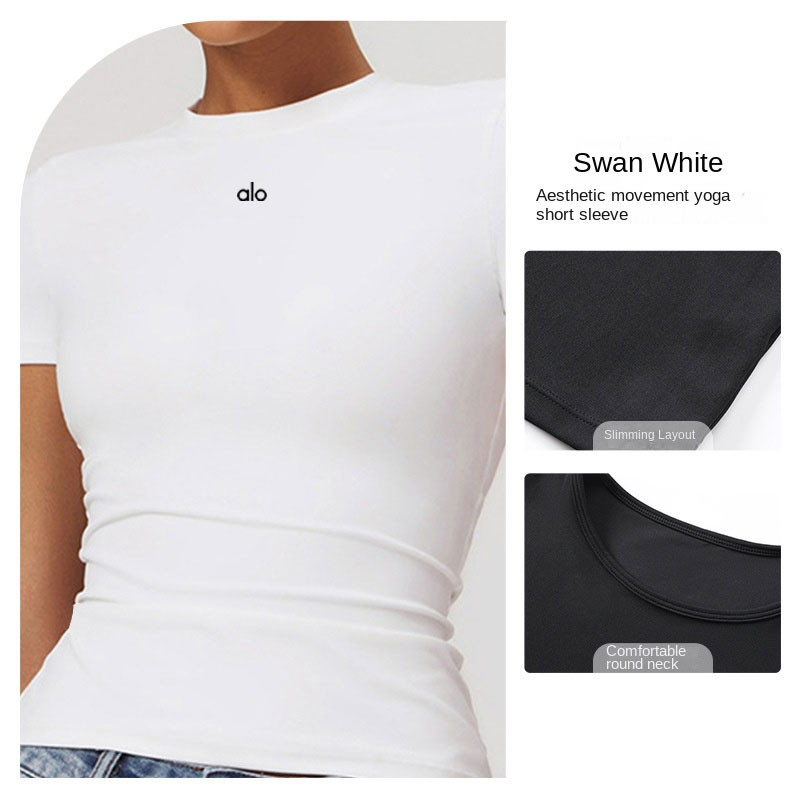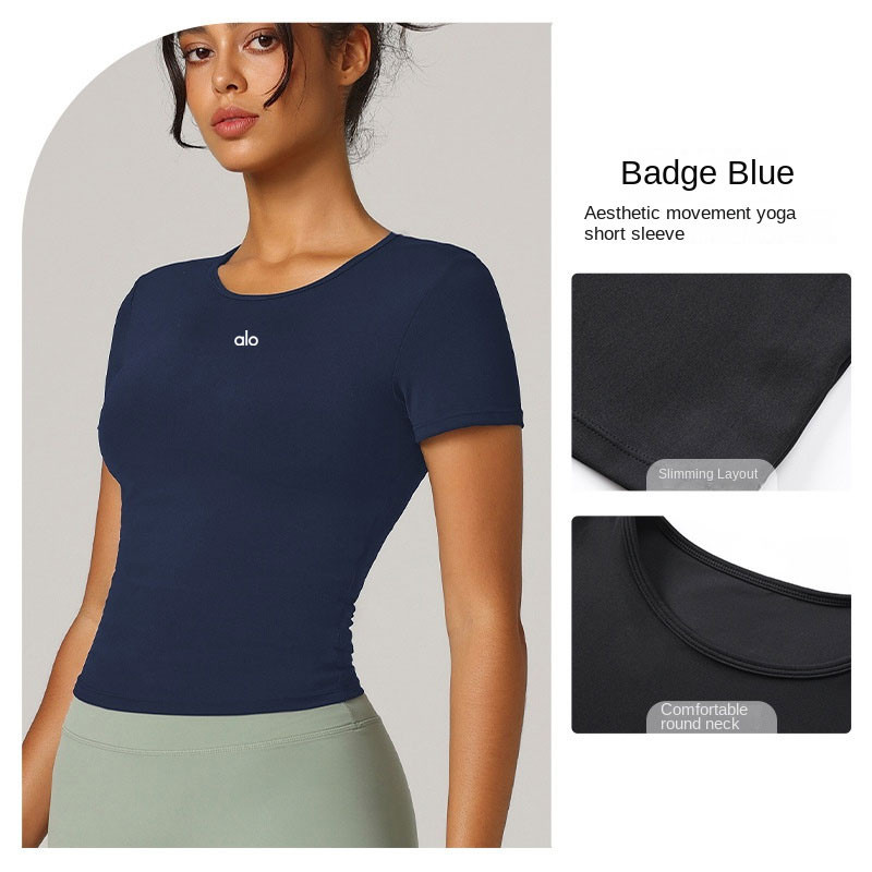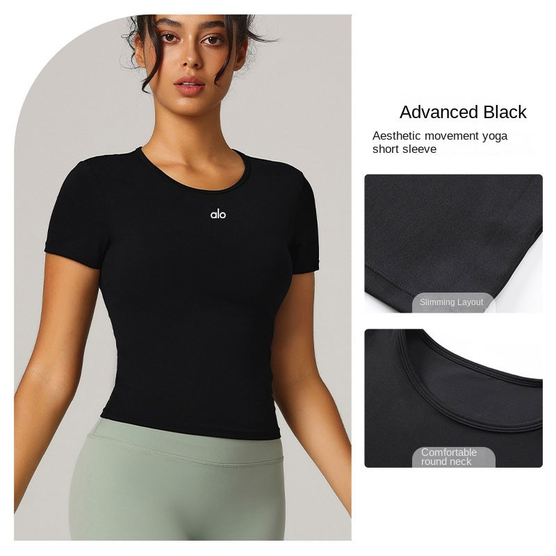เสื้อโยคะแขนสั้น สลิมฟิต สำหรับพิลาทิสและวิ่ง เหมาะสำหรับการออกกำลังกาย