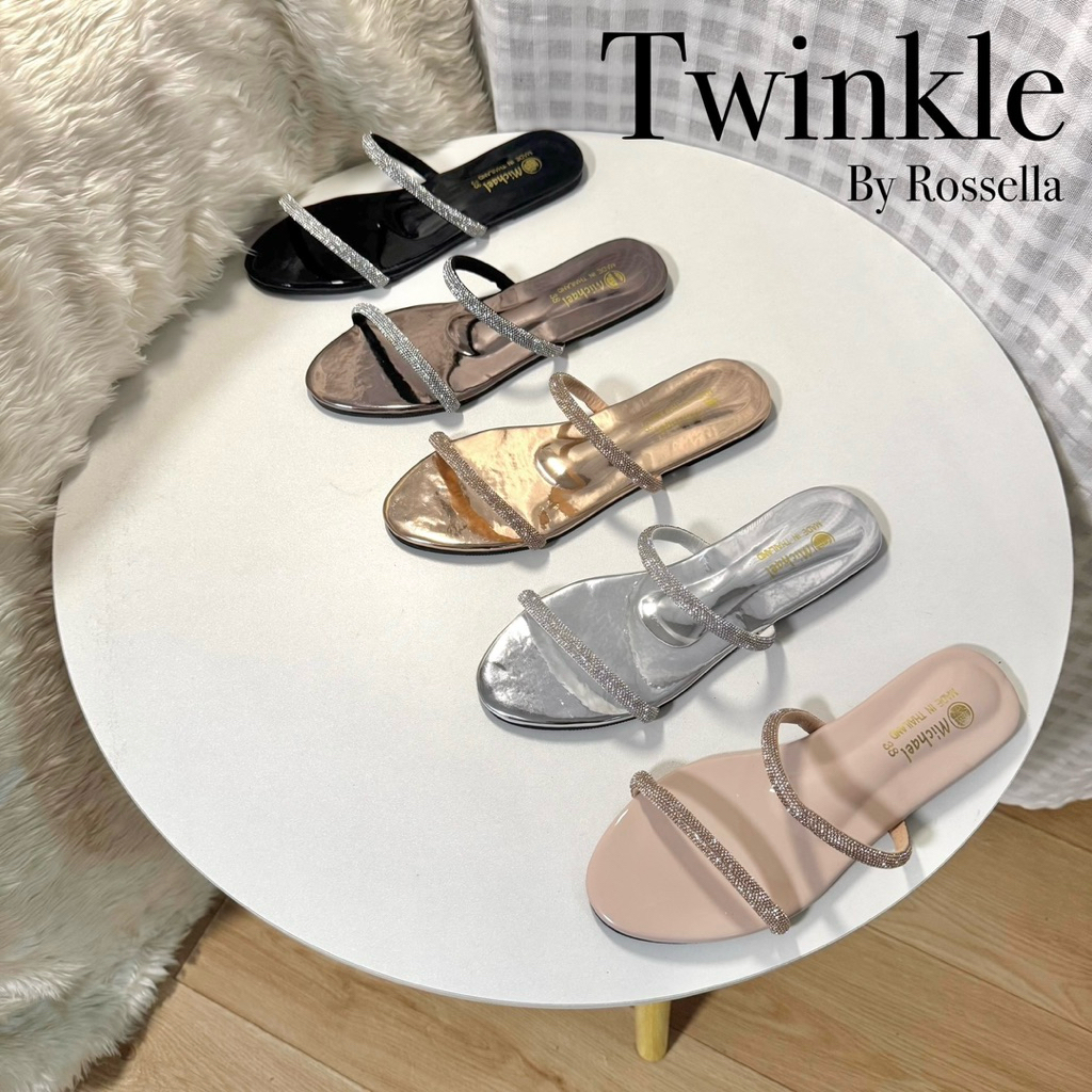 รุ่น Twinkle ? โดดเด่นด้วยหนังแก้วโทนเมทัลลิคเงางาม และประดับด้วยสายคาดเพชรเป็นประกายพร้อมเติมสีสันให้ทุกการก้าวเดิน