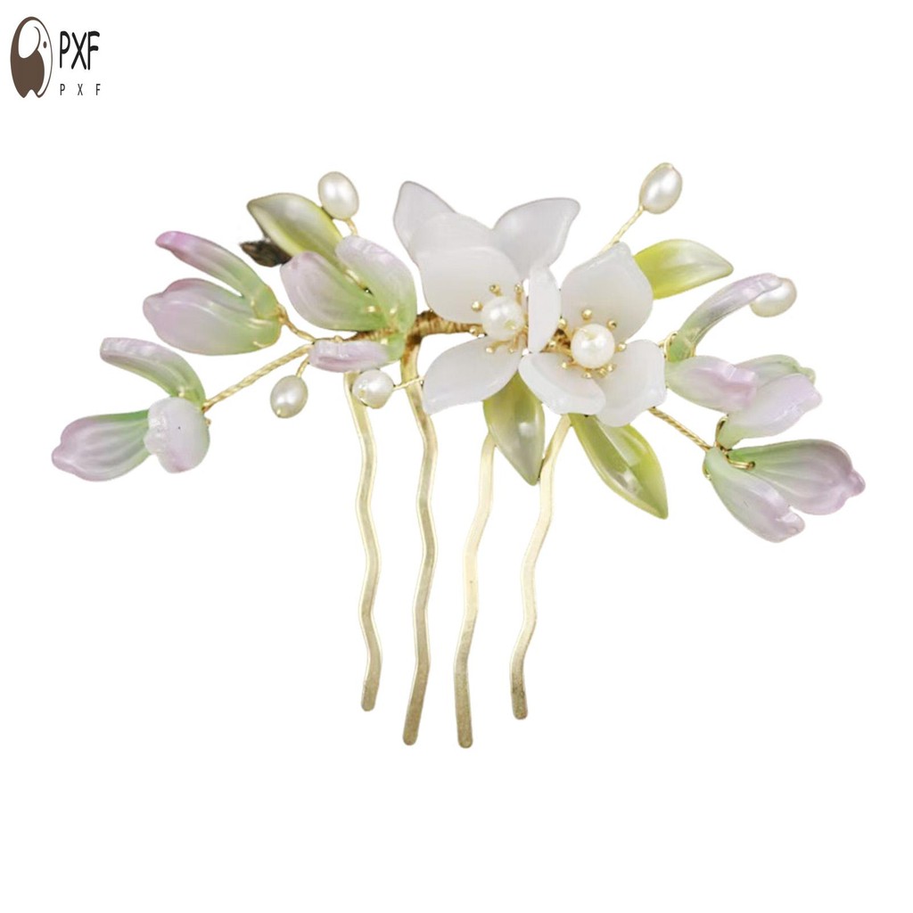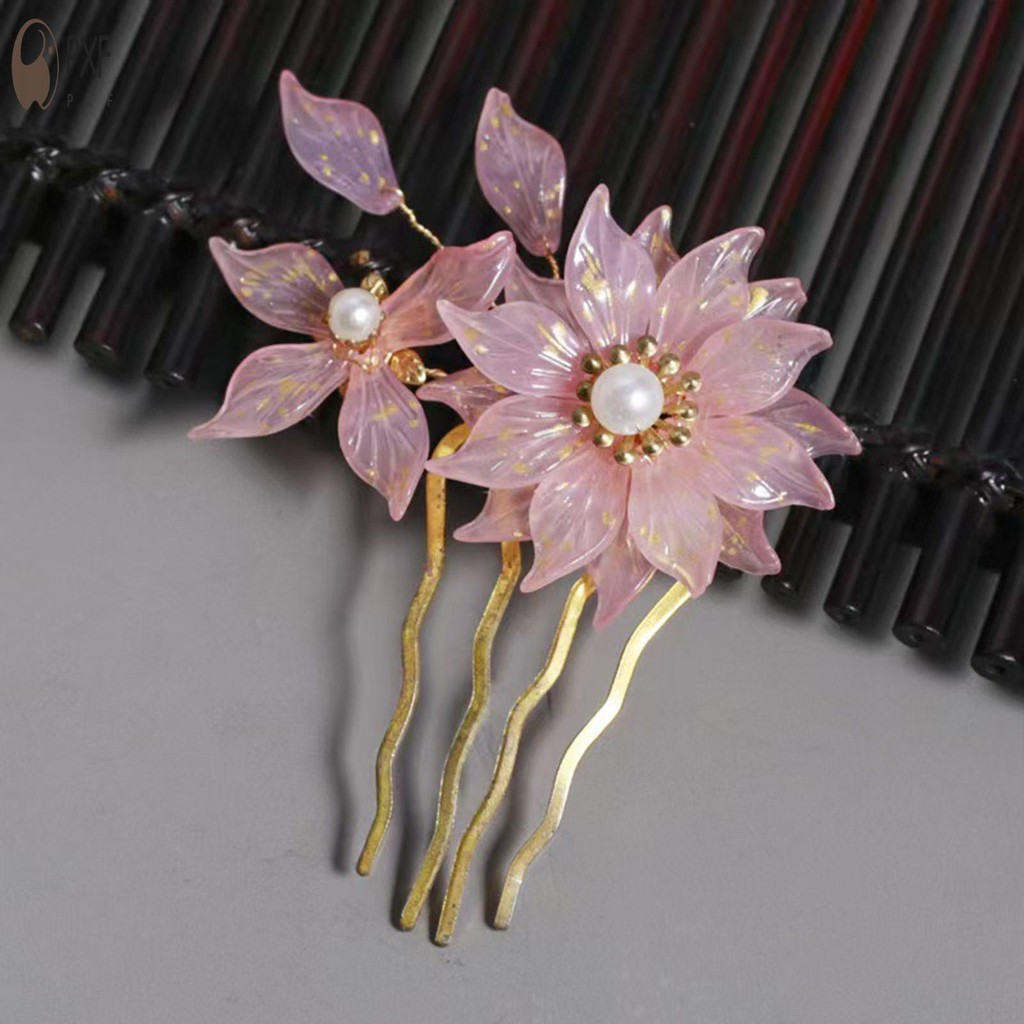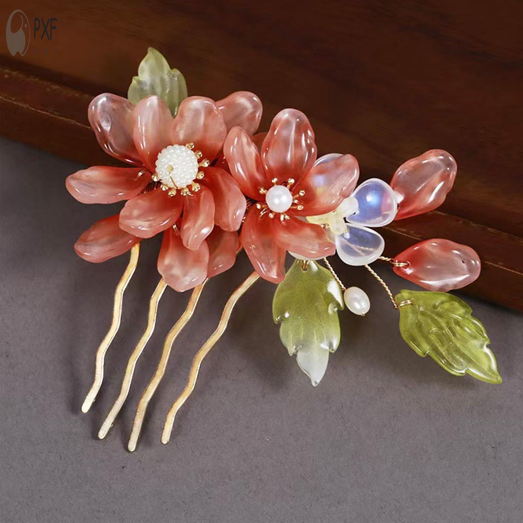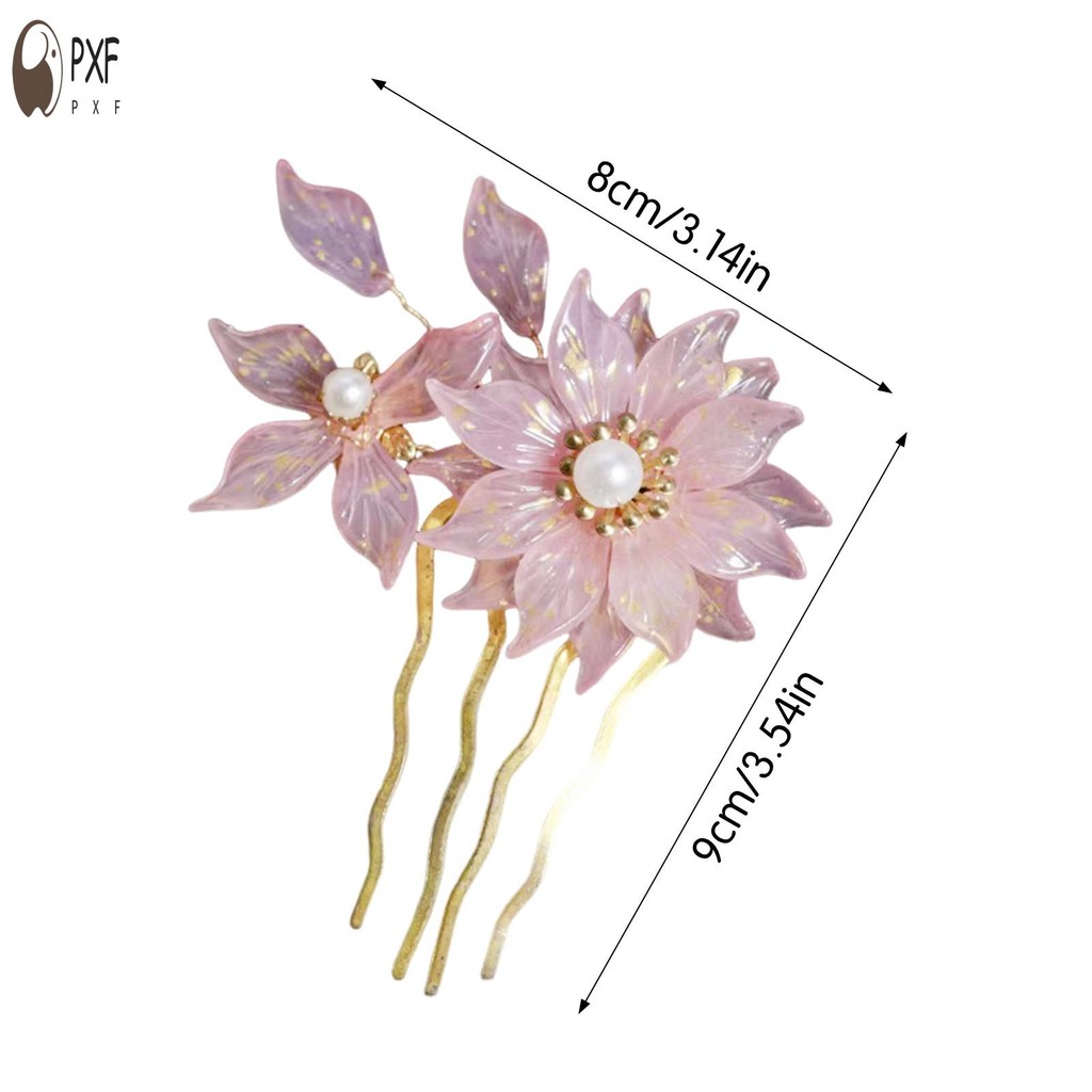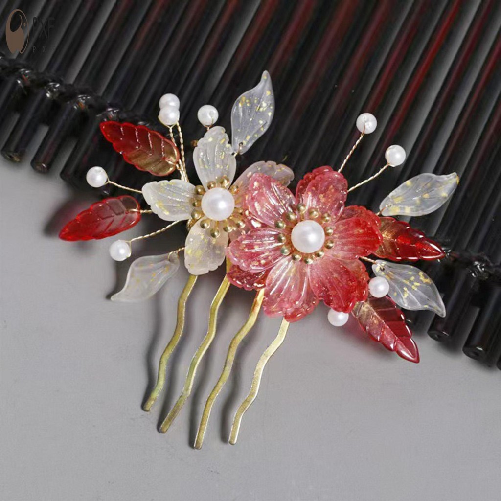 หวีผมเจ้าสาวสไตล์จีนประดับดอกไม้ ใช้งานได้หลากหลายสำหรับการจัดแต่งทรงผมหรูหรา