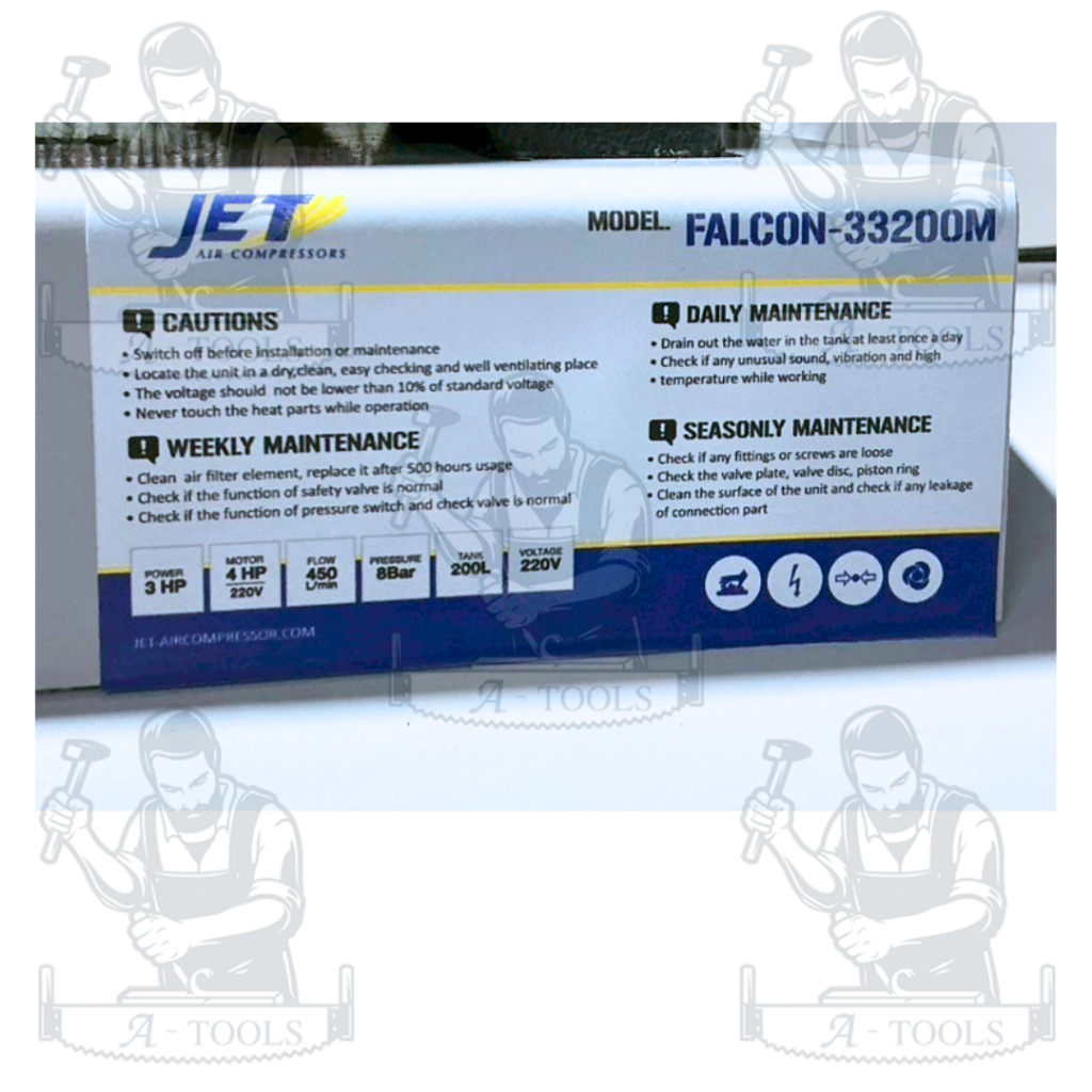 JET BY PUMA ปั๊มลม สายพาน 200ลิตร FALCON-33200M 3HP **ส่งเร็ว ของแท้100%**