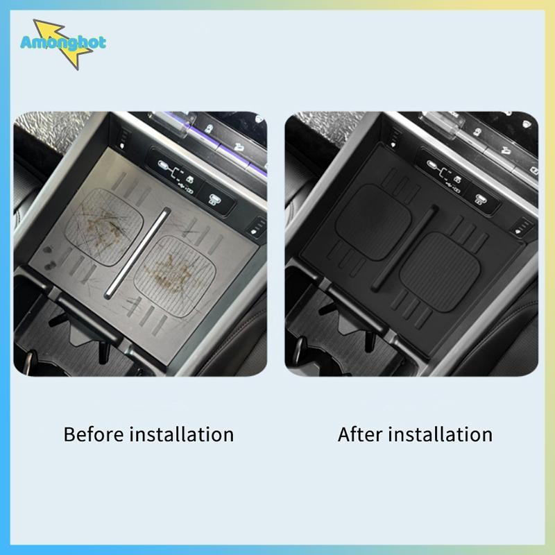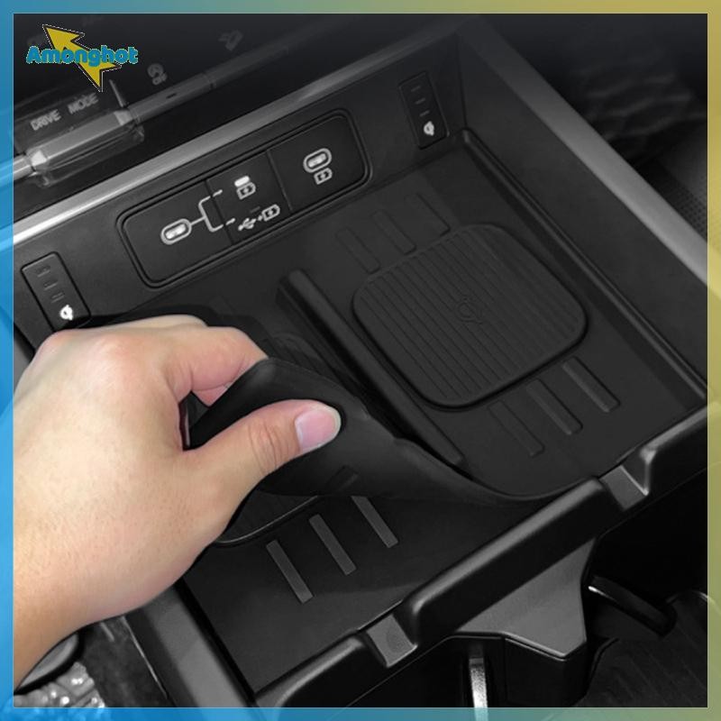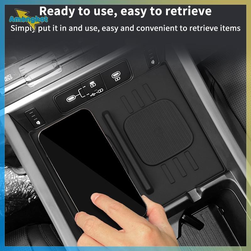 Amonghot> 1 ชิ้นสําหรับ Hyundai Santa Fe 2024 อุปกรณ์ตกแต่งภายในอัตโนมัติ Wireless Charger Mat Central Armrest PVC ck Mats ใหม่