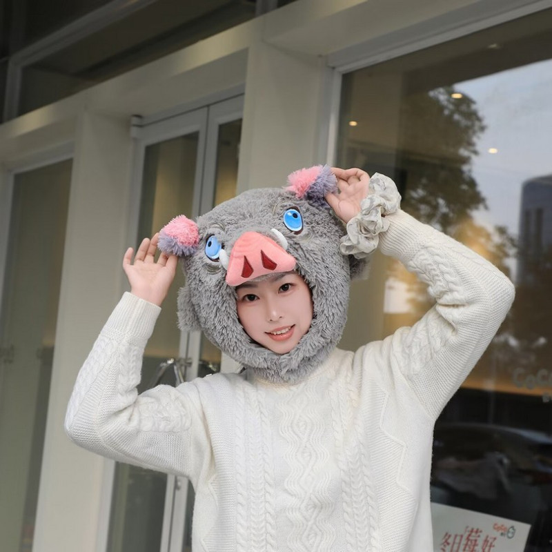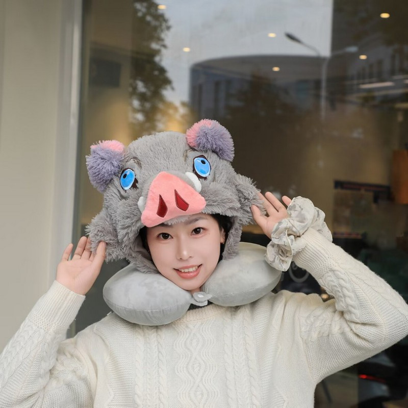 ??ส่งจากไทย?? Cute Anime Cartoon Plush Kimetsu No Yaiba Mouth Ping Yi Zhi Zhu Pig Head Hat U-Shape Pillow Neck Pillow