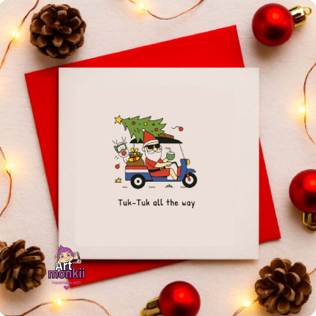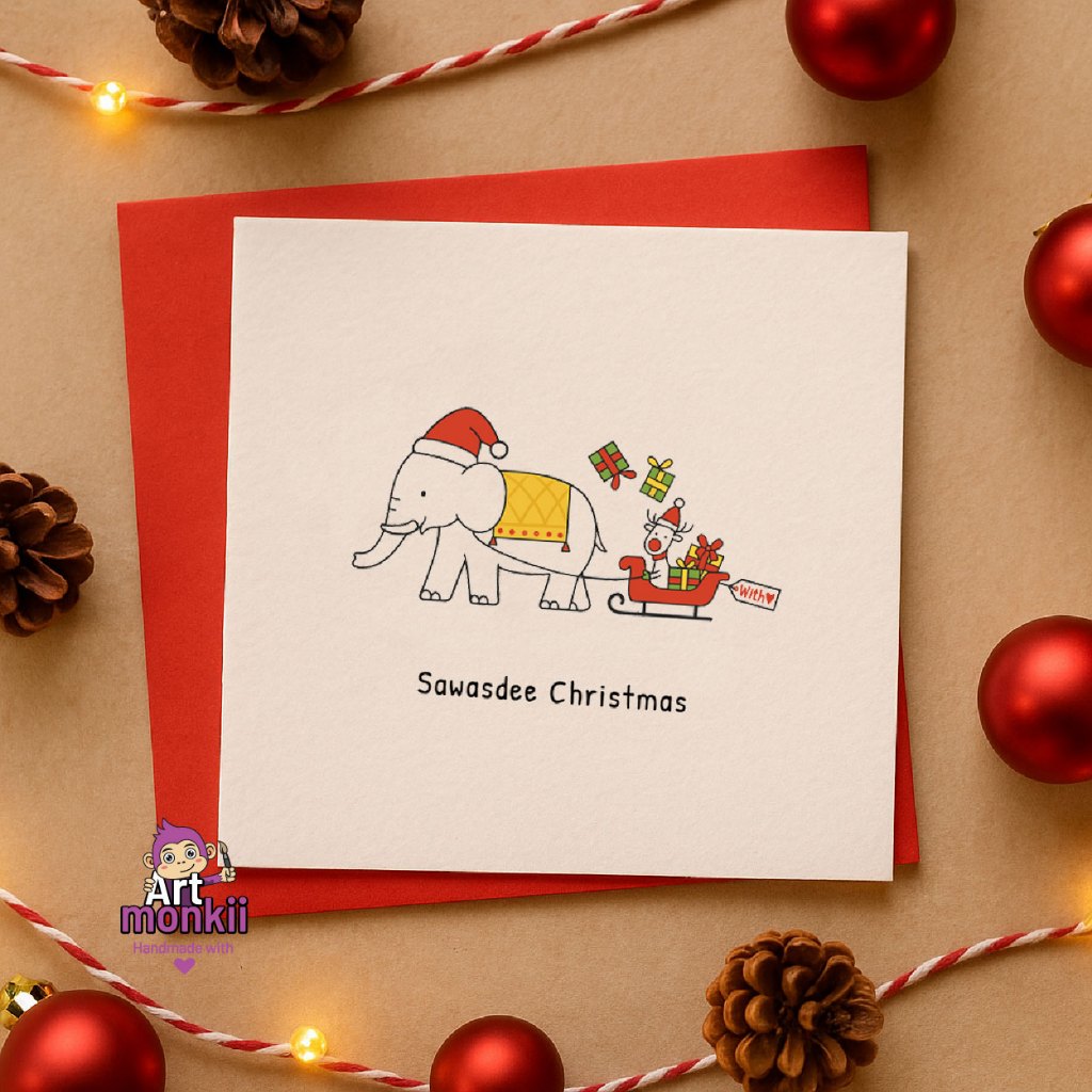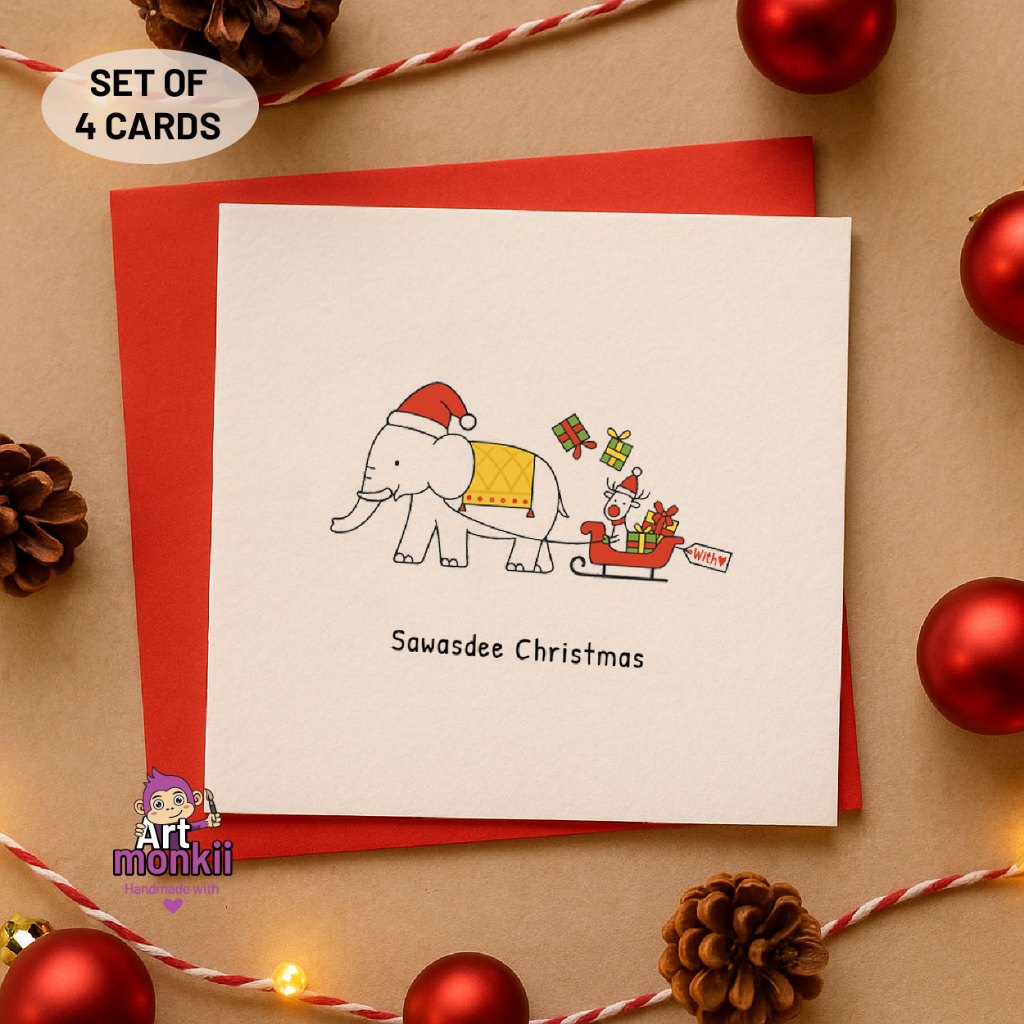 Thai Christmas Theme – Handmade Cards – Set of 4 Christmas Cards, Greeting Cards, Christmas Card Pack