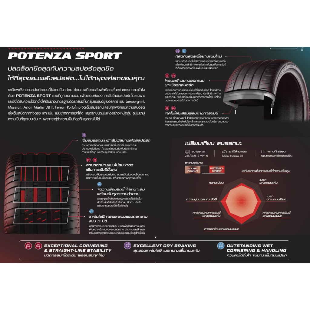 (ส่งฟรี) BRIDGESTONE 225/50R18 รุ่น POTENZA SPORT (ราคาต่อ2เส้น) ยางใหม่ ปี2024 มีรับประกัน แถมจุ๊บลม ขอบ18 : 225 50R18