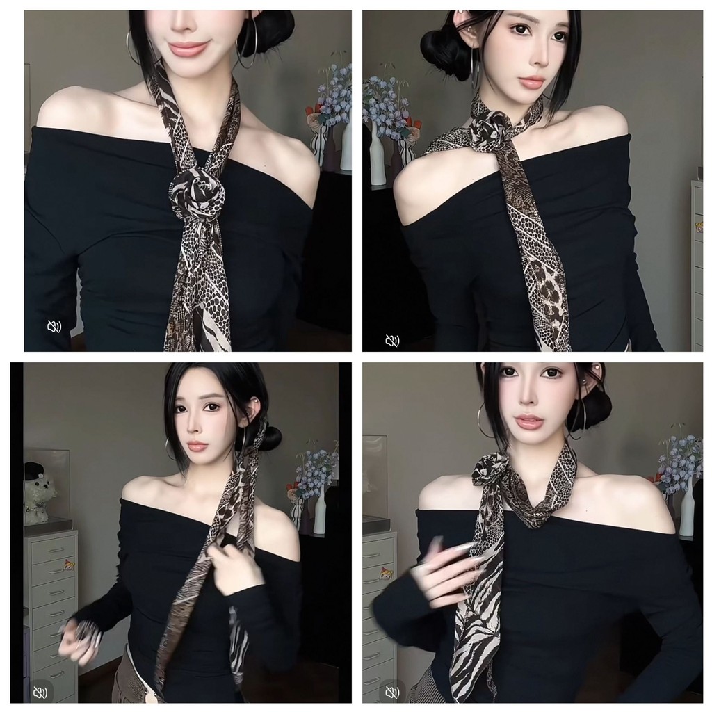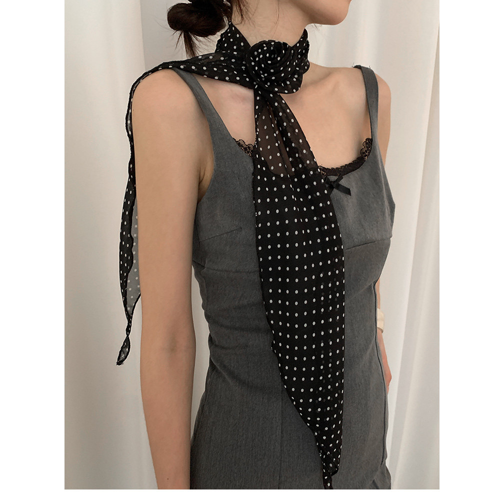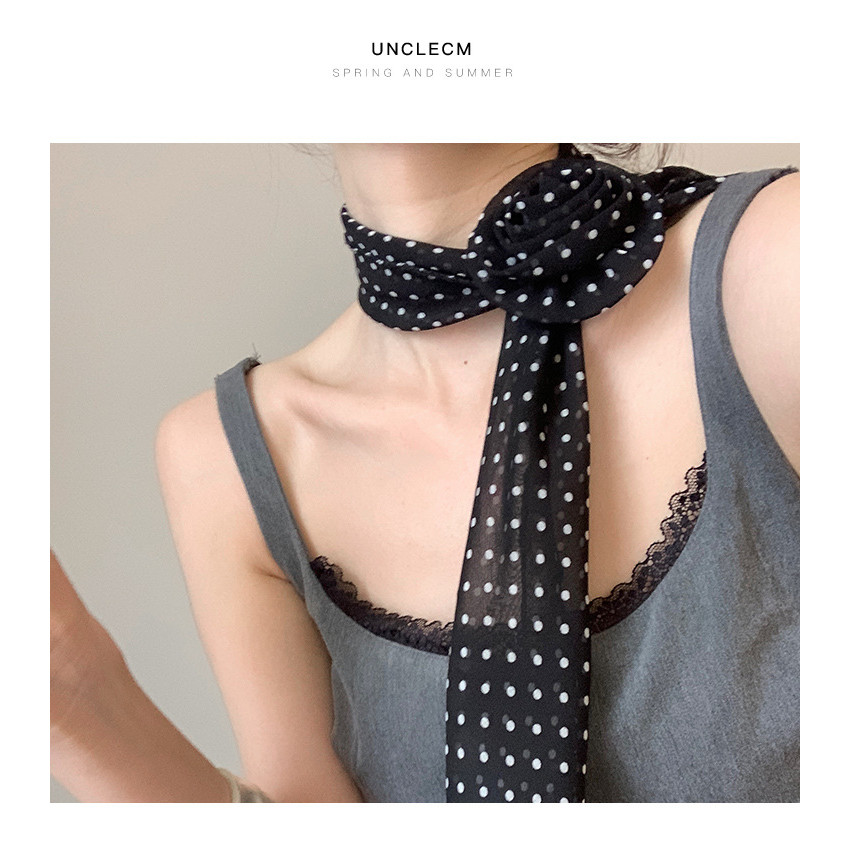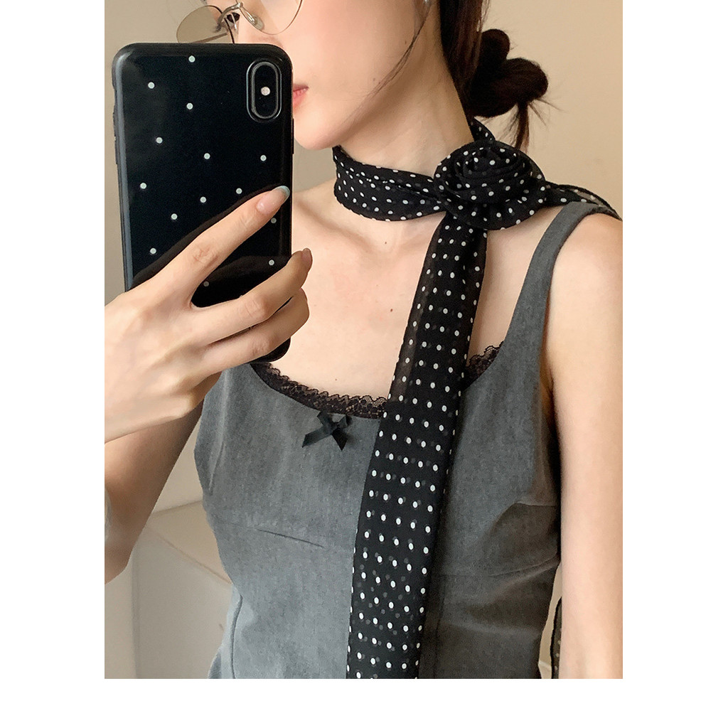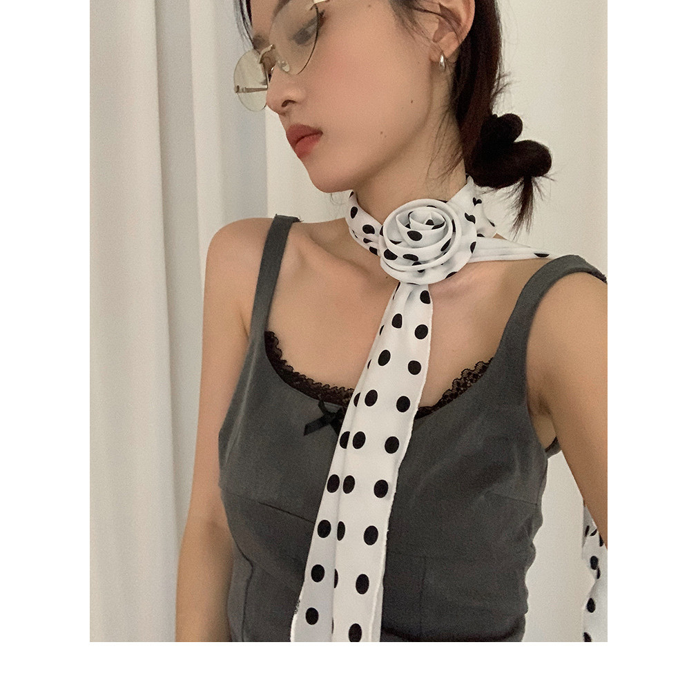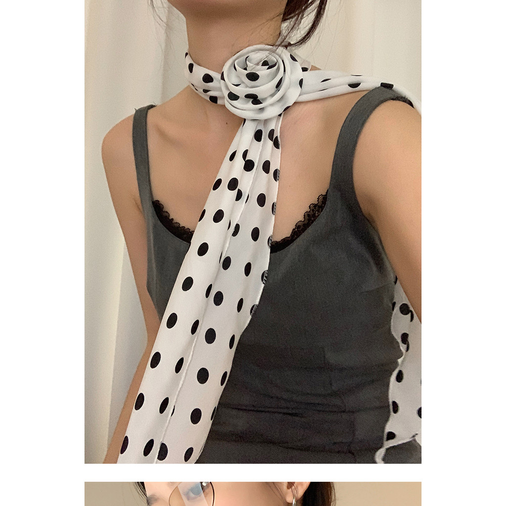 Sweet Elegant Long Polka Dot Rose Silk Scarf ผ้าพันคอแฟชั่น All-Match