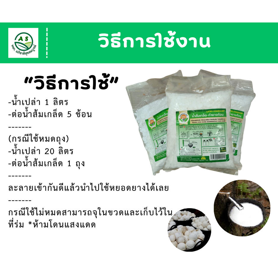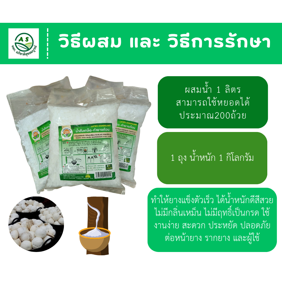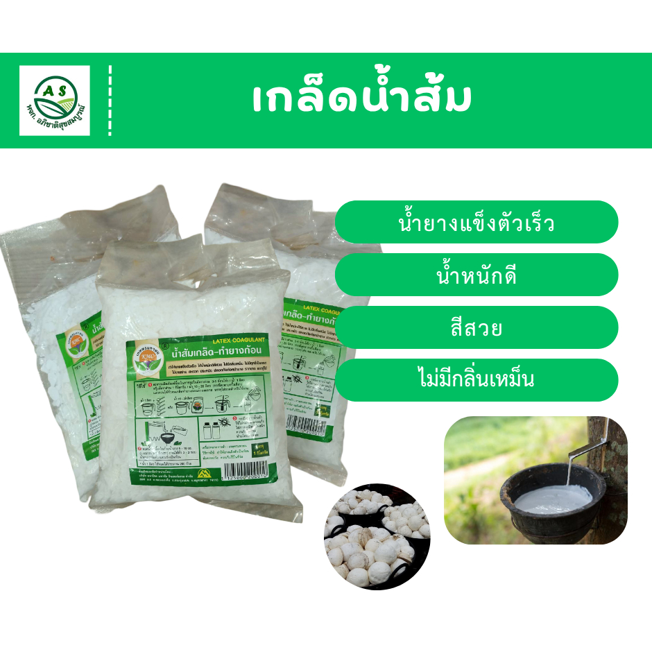 น้ำส้มเกล็ด ทำยางแข็งตัวเร็ว ได้น้ำหนักดีสีสวย ไม่มีกลิ่นเหม็น ไม่มีฤทธิ์เป็นกรด ใช้งานง่าย พกพาง่าย