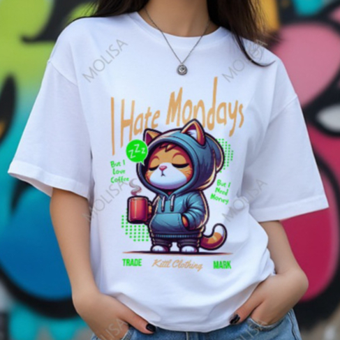 molisa เสื้อลายแมว ใส่ได้ทั้งชายและหญิง เสื้อยืดแฟชั่น Printed T shirt ใส่สบาย คุณภาพดี 68104#