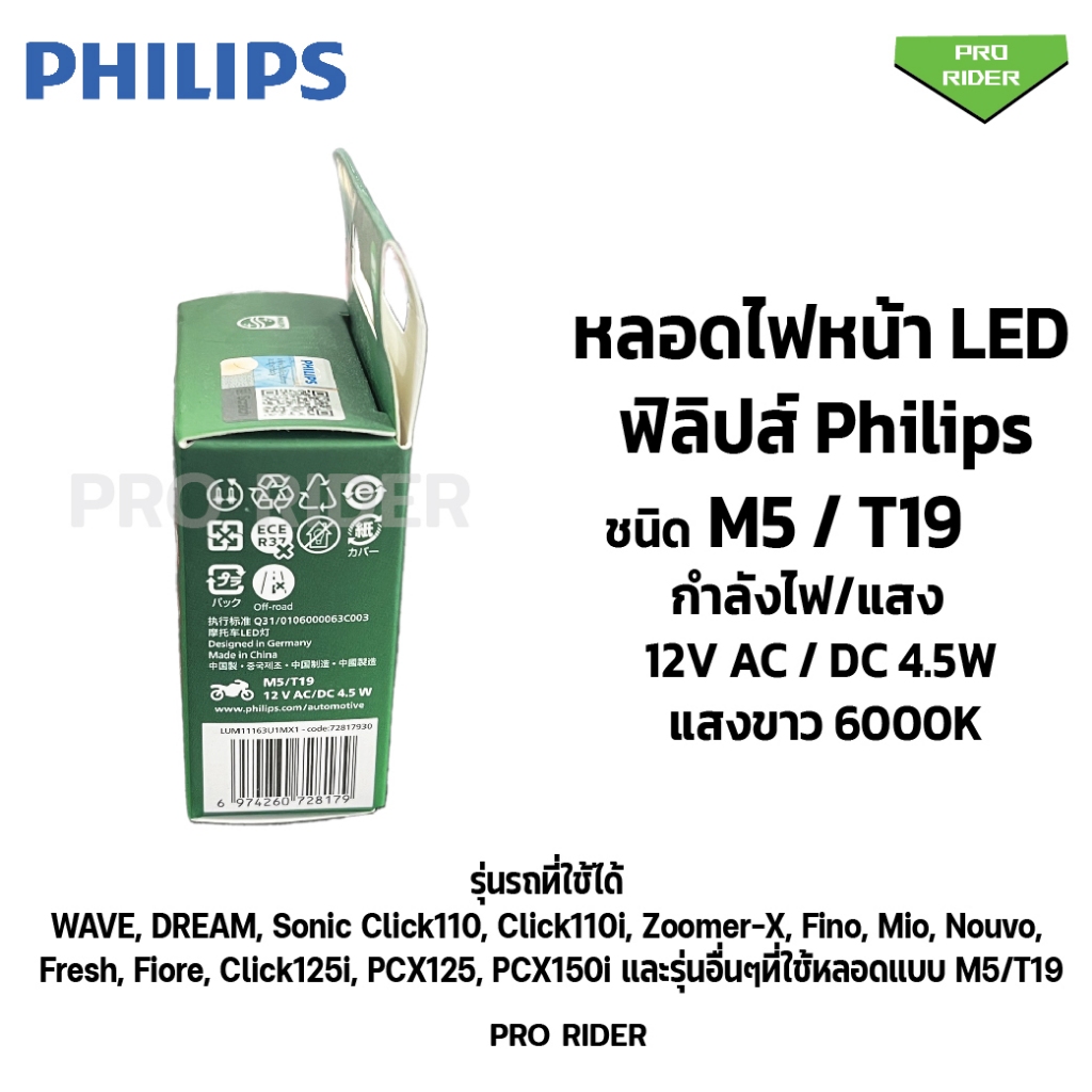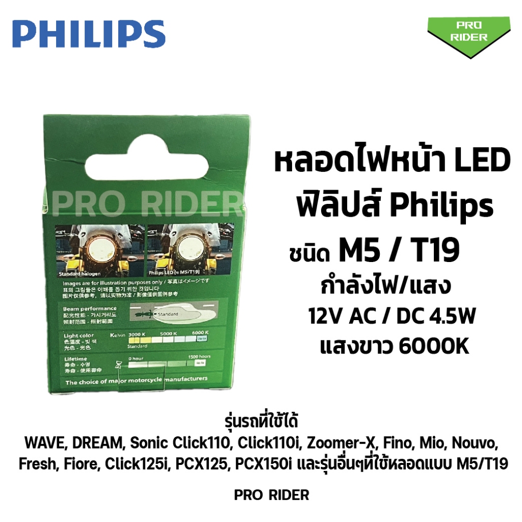 หลอดไฟ LED ฟิลิปส์ Philips M5/T19 AC / DC 4.5W แสงขาว 6000K (แป้นเล็ก) หลอดไฟหน้ามอเตอร์ไซค์