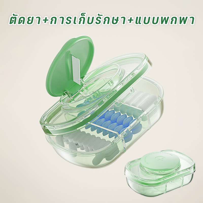 กล่องเก็บยาใสตัด 1ใน2 ที่ตัดเม็ดยา กล่องยาแบบพกพา กล่องเก็บยา ที่แบ่งยา ปริมาณขนาดเล็ก
